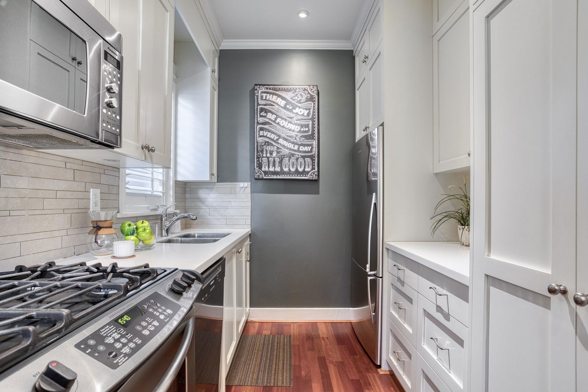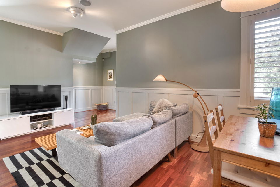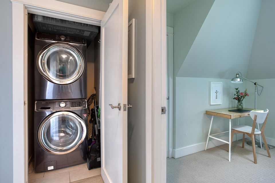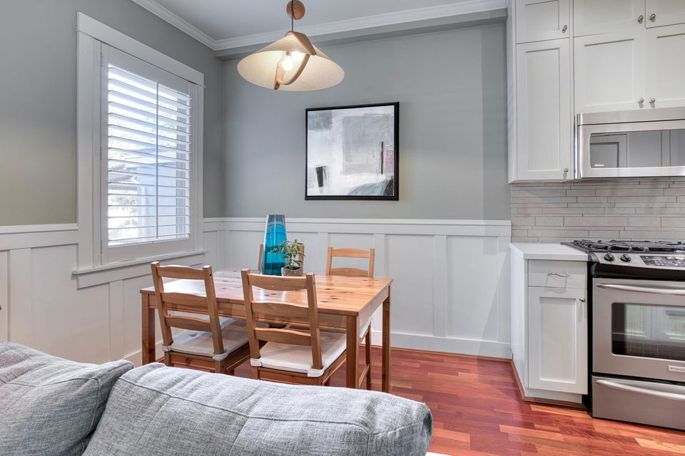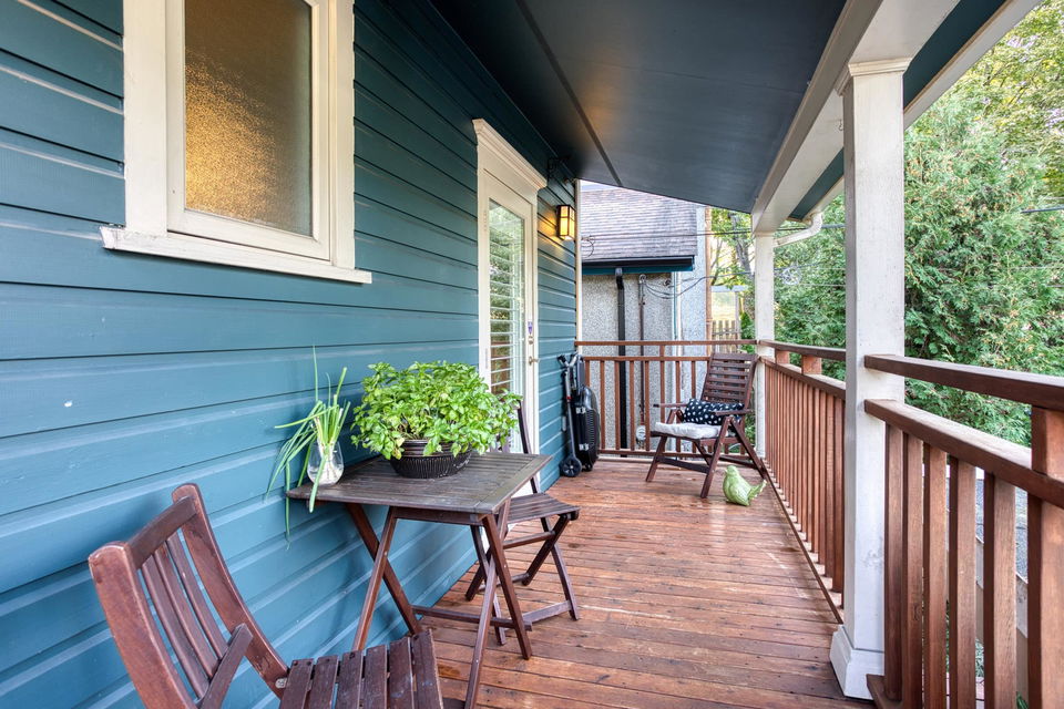 Strathcona Lovers! This Heritage style town home is the perfect renovation of one of the oldest homes in this very urban neighbourhood. Situated across the street from family oriented McLean Park the location is private and peaceful with a strong sense of community. There are two levels, two bedrooms, two spa bathrooms and two outdoor decks for you to enjoy. Jojoba hardwood floors, detailed wainscotting and crown moldings. A well appointed kitchen with stainless, Corian counters, loads of storage, and who doesn’t love a window above the kitchen sink! Efficient radiant heat throughout and 10 ft ceilings with skylights on the upper level providing tons of natural light. Lord Strathcona School and Community Centre are just a block away. Cafes and neighbourhood grocery stores to savour and local artist studios to support. Pets and rentals are permitted. Well managed, well maintained 3 unit strata. Close to the Adanac-Union bike corridor with a walk score of 87. This is part of East Vancouver history!