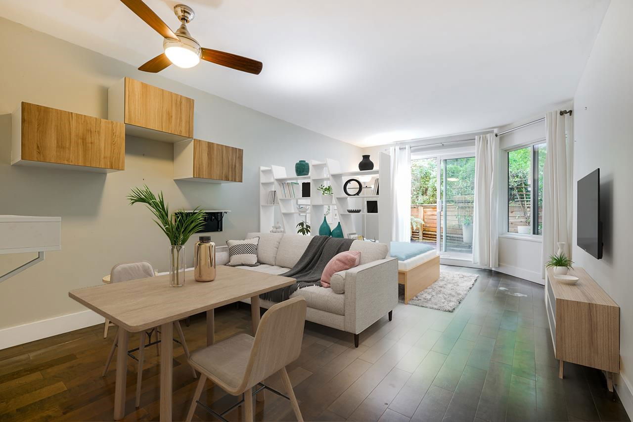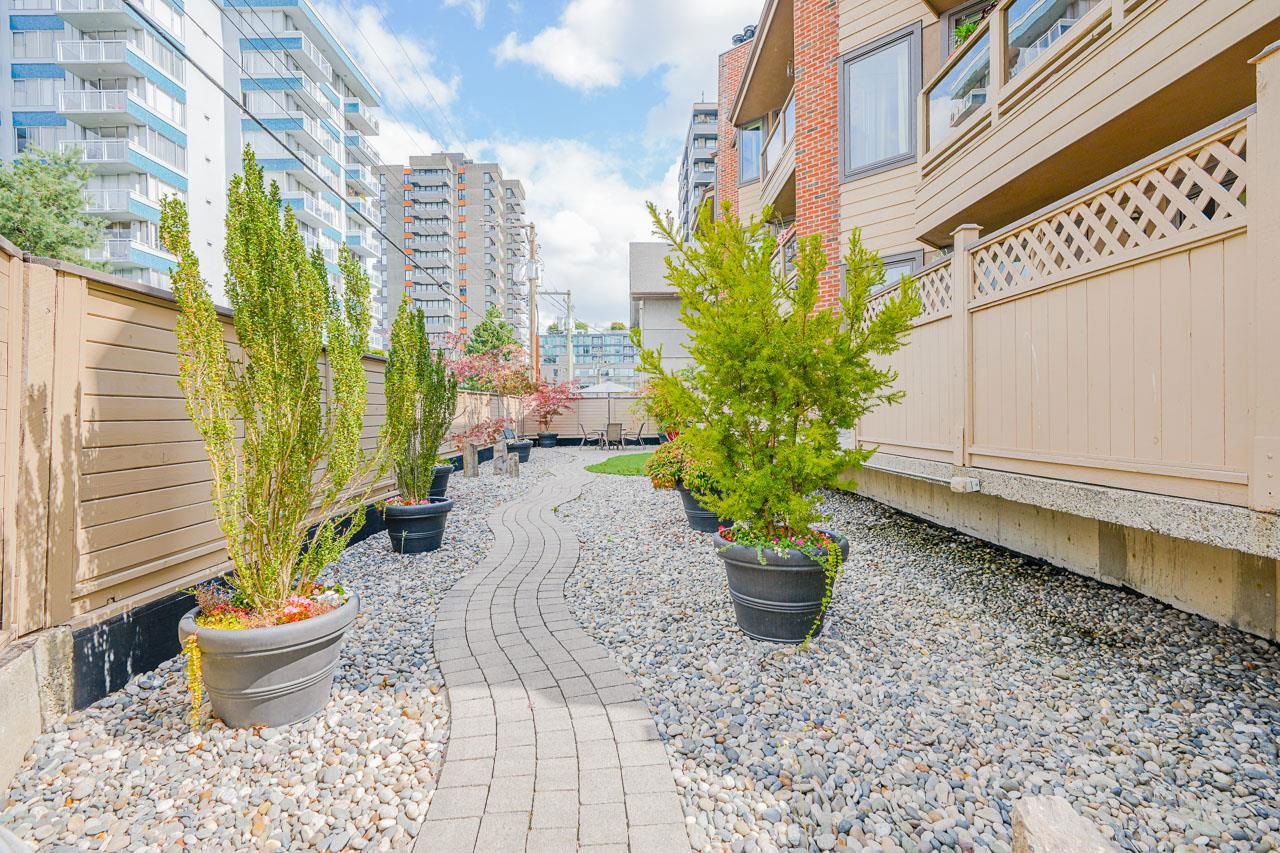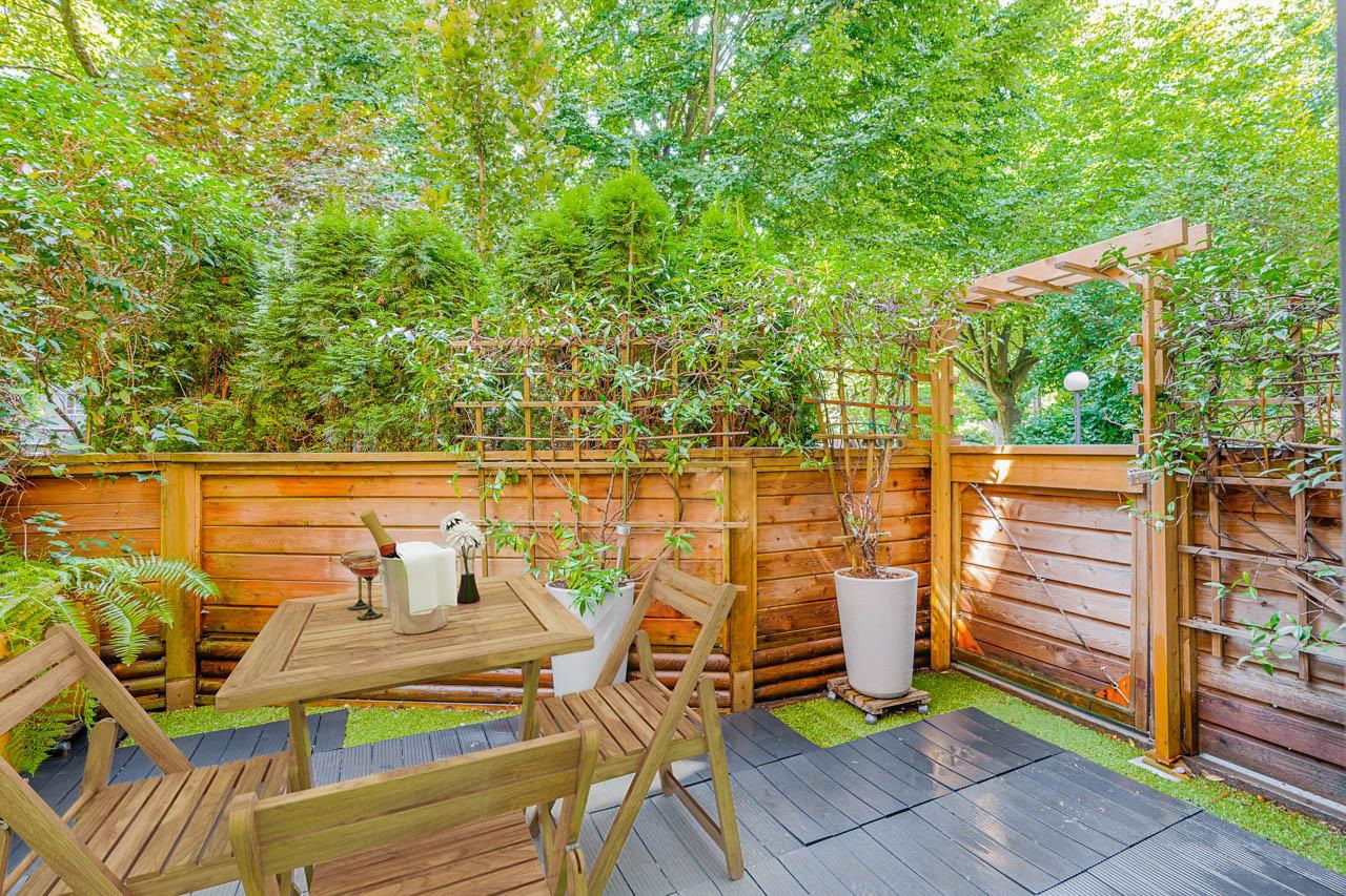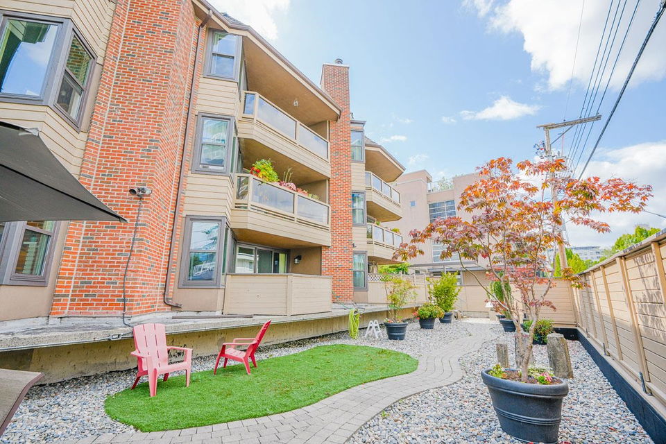 This is the picture PERFECT Pied de Terre or PERFECT first time buyer property both inside and out. A lush private 100 sq. ft. south facing PATIO for outdoor living and gardening. Easy access for Fido. Fully RENOVATED ground floor studio offering a large open layout in a superbly well run boutique building on a quiet tranquil treelined street in FAIRVIEW. 575 West 13th has a walk score of 94, bike score of 91 and transit score of 85! Upgraded windows, carpets, common areas and a communal outdoor picnic/patio area for everyone to enjoy. If you’re looking for walking distance to VGH, City Hall, Cambie Village and City Square Mall this is THE location and THIS suite has it all. There’s insuite laundry, engineered hardwood floors, updated kitchen and bath, bike storage, locker and secure parking. Pets are welcome. Rentals are declined. Pride of ownership is very evident in the complex! Great things come in small packages!