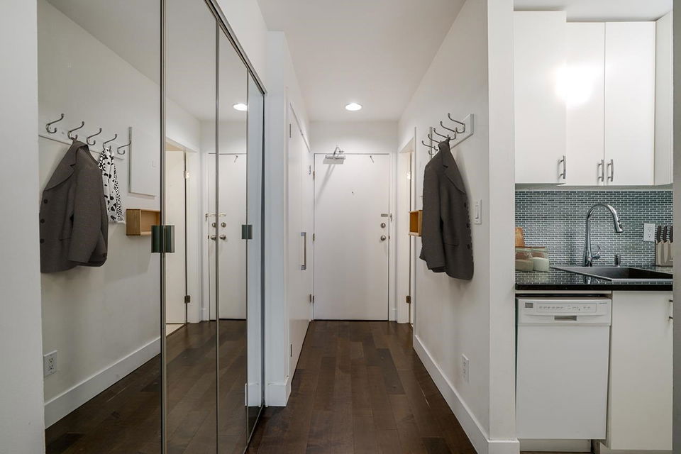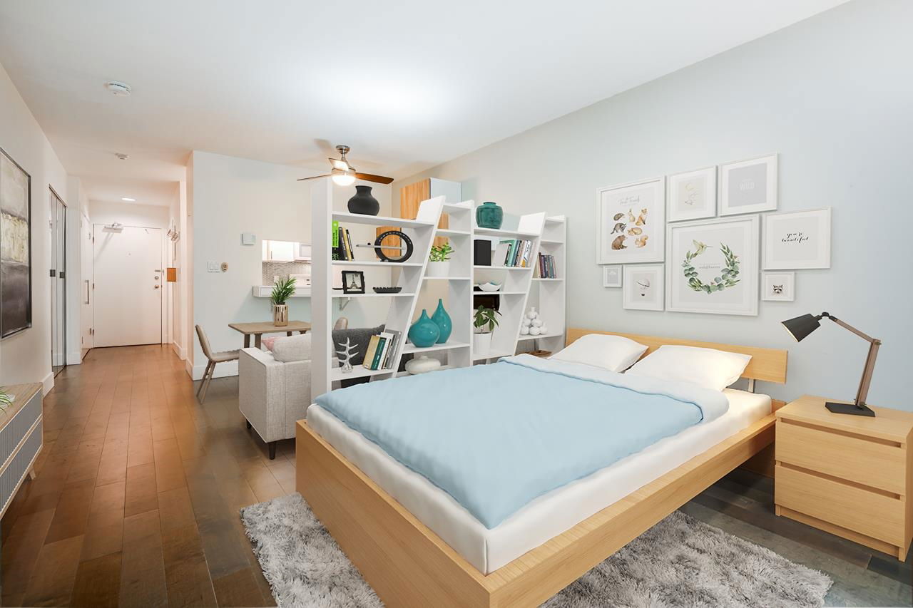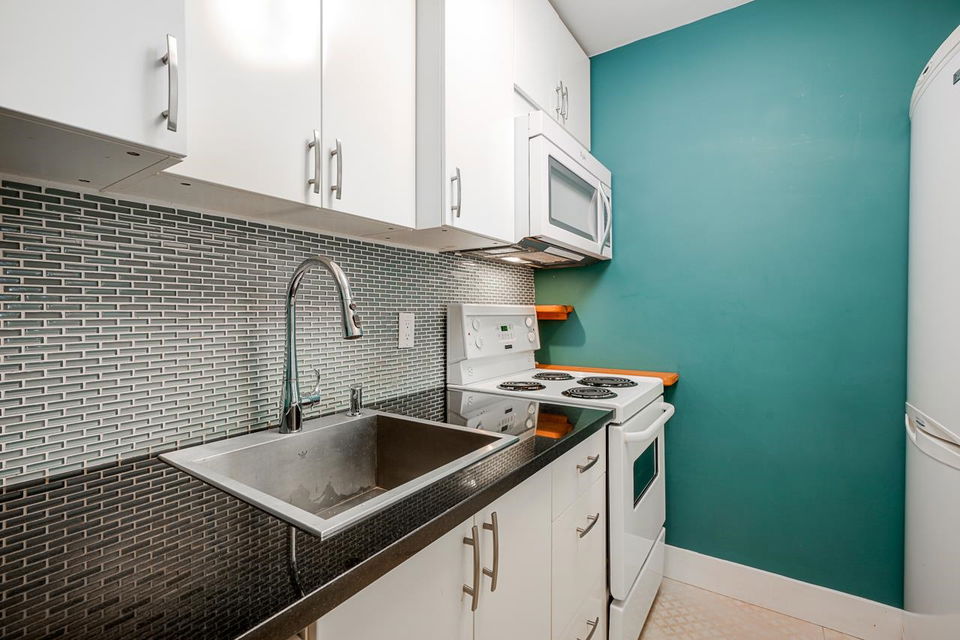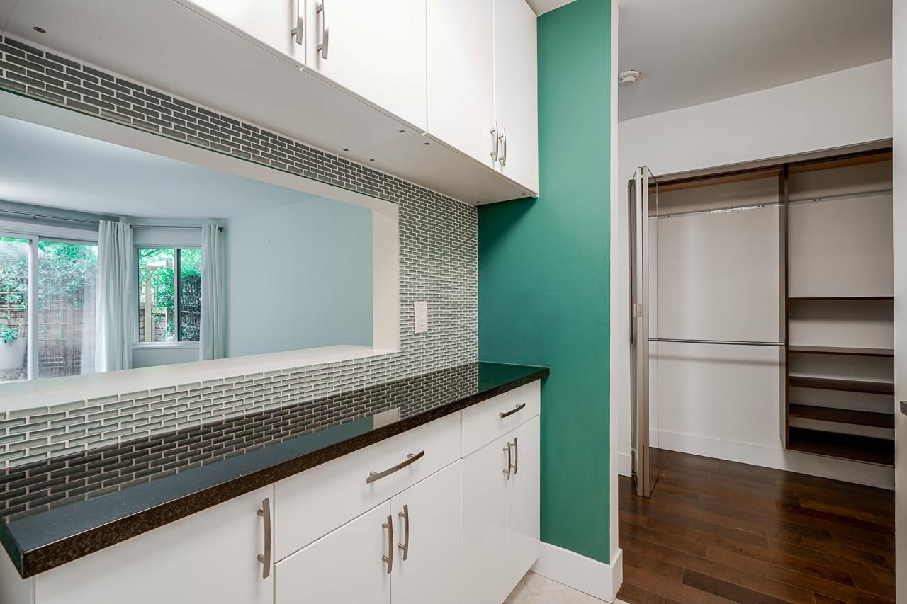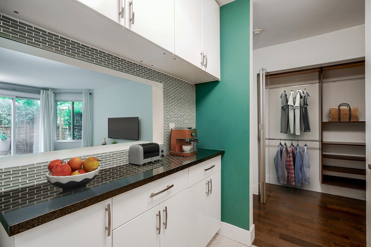 This is the picture PERFECT Pied de Terre or PERFECT first time buyer property both inside and out. A lush private 100 sq. ft. south facing PATIO for outdoor living and gardening. Easy access for Fido. Fully RENOVATED ground floor studio offering a large open layout in a superbly well run boutique building on a quiet tranquil treelined street in FAIRVIEW. 575 West 13th has a walk score of 94, bike score of 91 and transit score of 85! Upgraded windows, carpets, common areas and a communal outdoor picnic/patio area for everyone to enjoy. If you’re looking for walking distance to VGH, City Hall, Cambie Village and City Square Mall this is THE location and THIS suite has it all. There’s insuite laundry, engineered hardwood floors, updated kitchen and bath, bike storage, locker and secure parking. Pets are welcome. Rentals are declined. Pride of ownership is very evident in the complex! Great things come in small packages!
