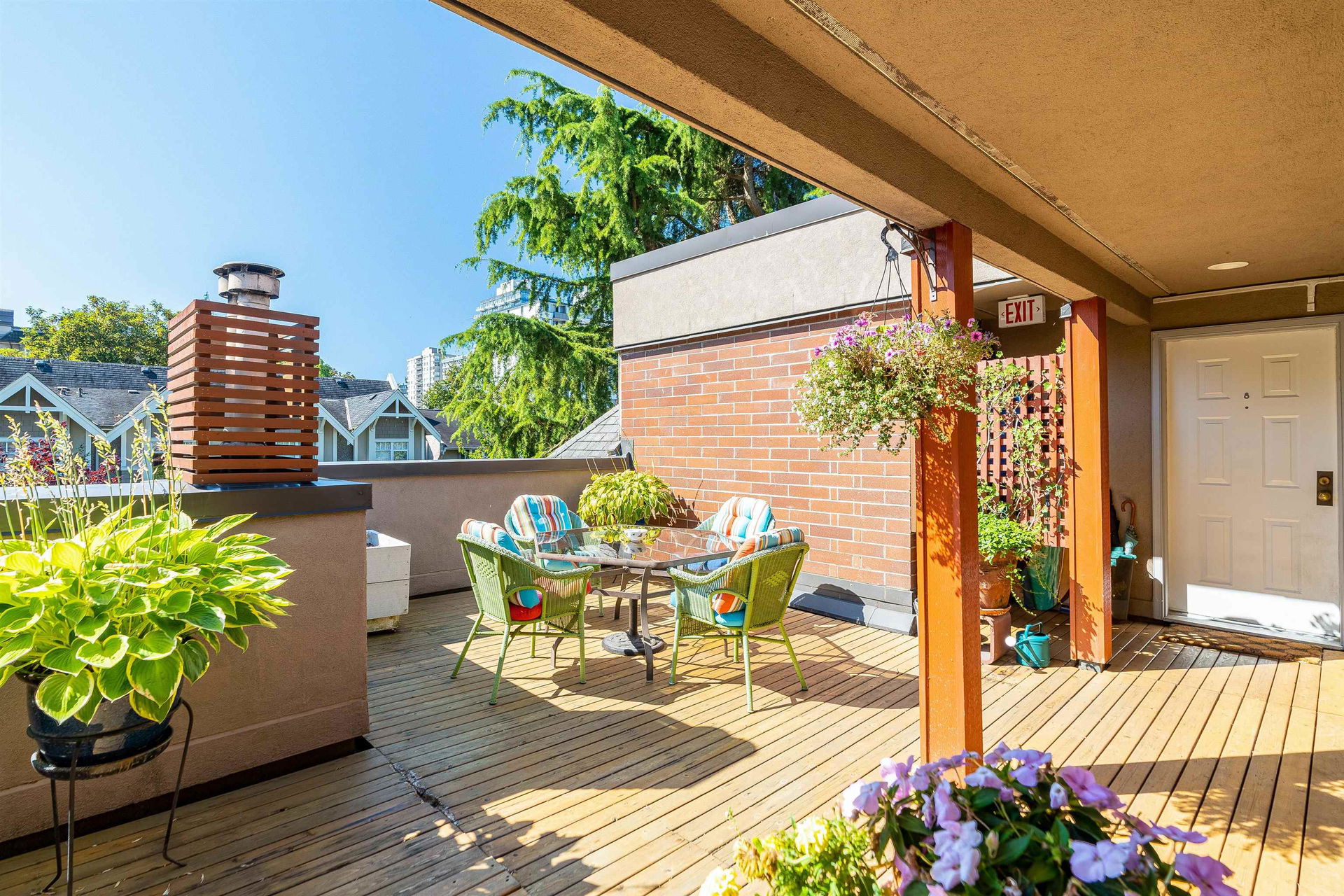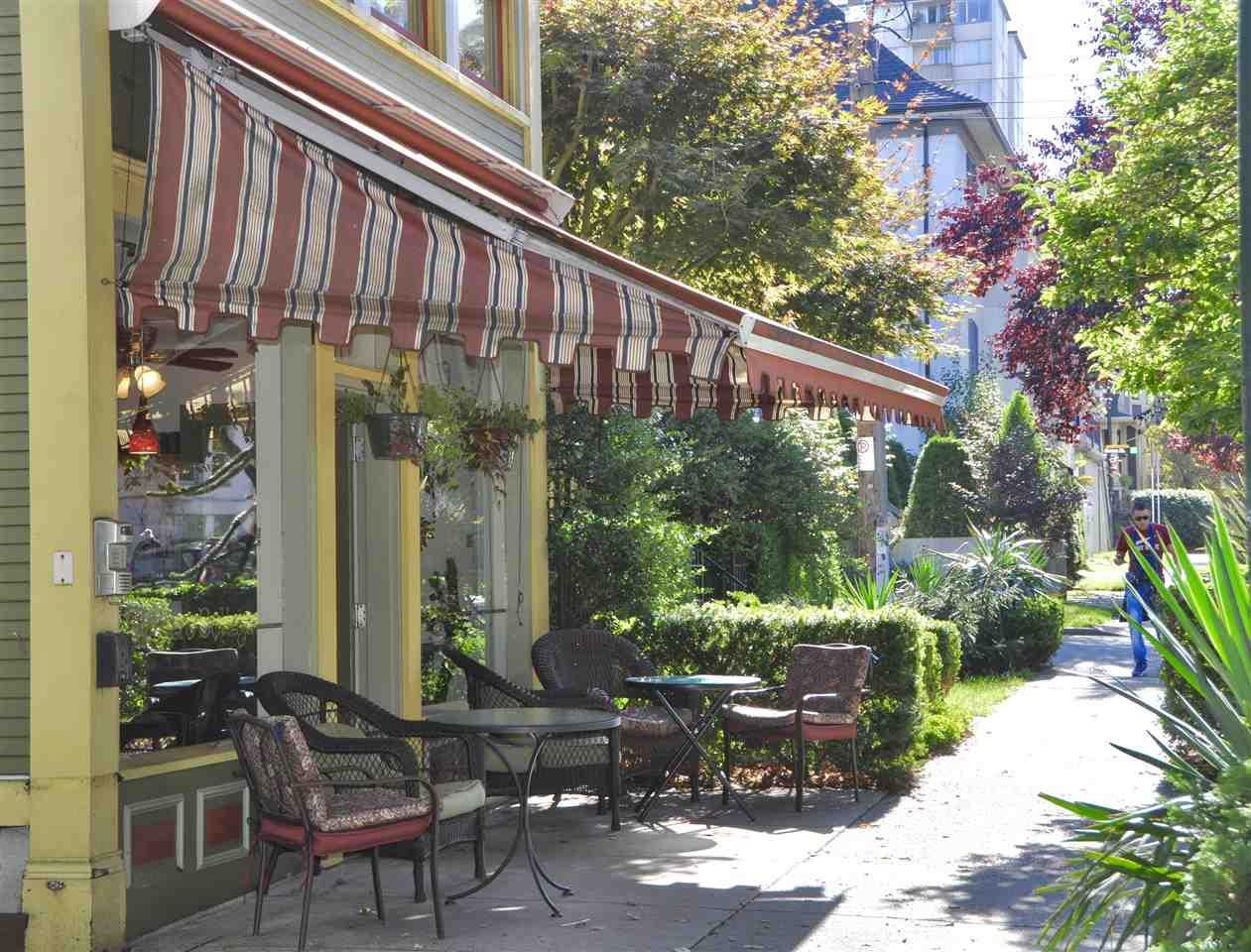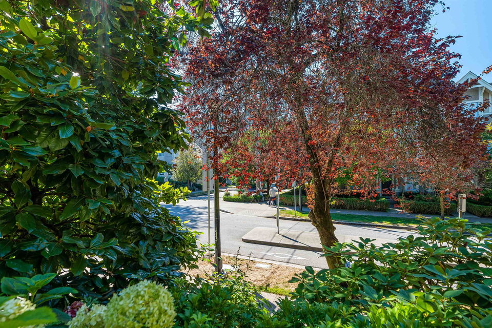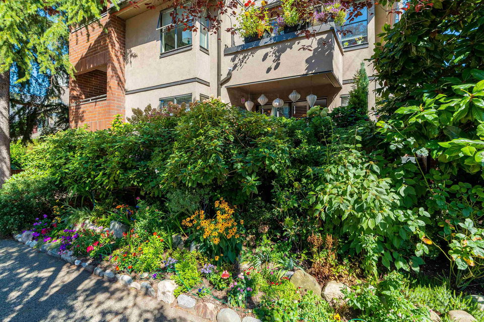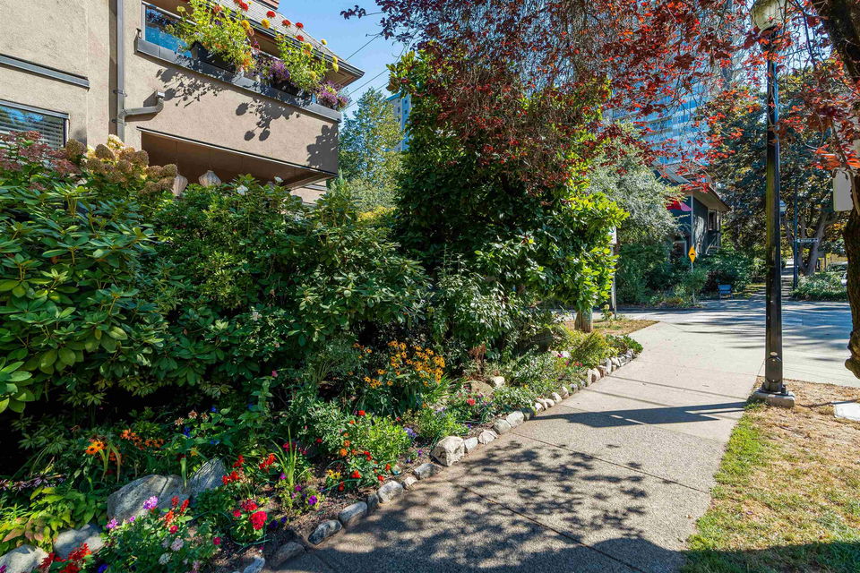 This sophisticated south facing corner home presents a renovated modern open floor plan that’s extremely versatile to many decorating styles. In the heart of the West End along the peaceful treelined Comox corridor your personal oasis is a spacious one bedroom with a chef’s kitchen, elegant Thomasville cabinetry, granite counters and Bosch & Fisher Paykel appliances. A spa-inspired bathroom accessorized with exquisite stained glass, heated tile floors and jetted bath. Engineered hardwood floors, recessed lighting, California shutters, insuite laundry and custom built-ins, along with parking and storage. A fully covered all season patio overlooks a gorgeous, landscaped garden. Pets are welcome. City Pointe is a boutique proactive 8-unit strata, fully rain screened with a common roof deck for entertaining and BBQ’ing. You’ll appreciate this beautiful innovatively designed property that’s perfectly positioned in this welcoming peaceful pocket of the neighbourhood.