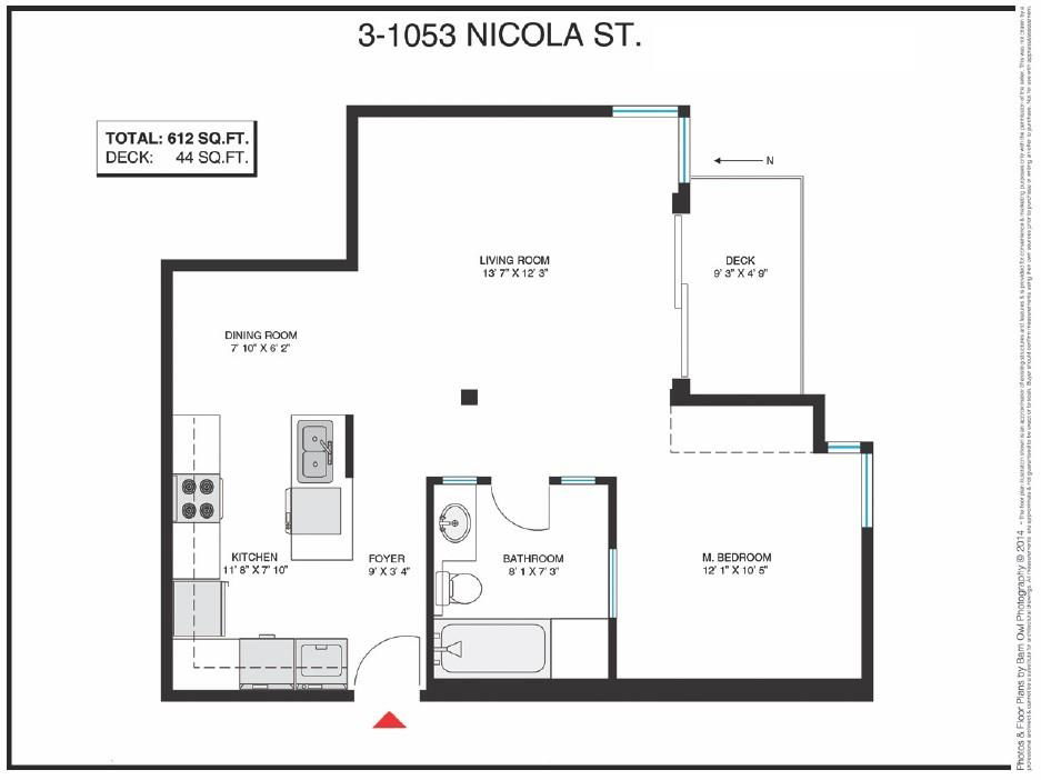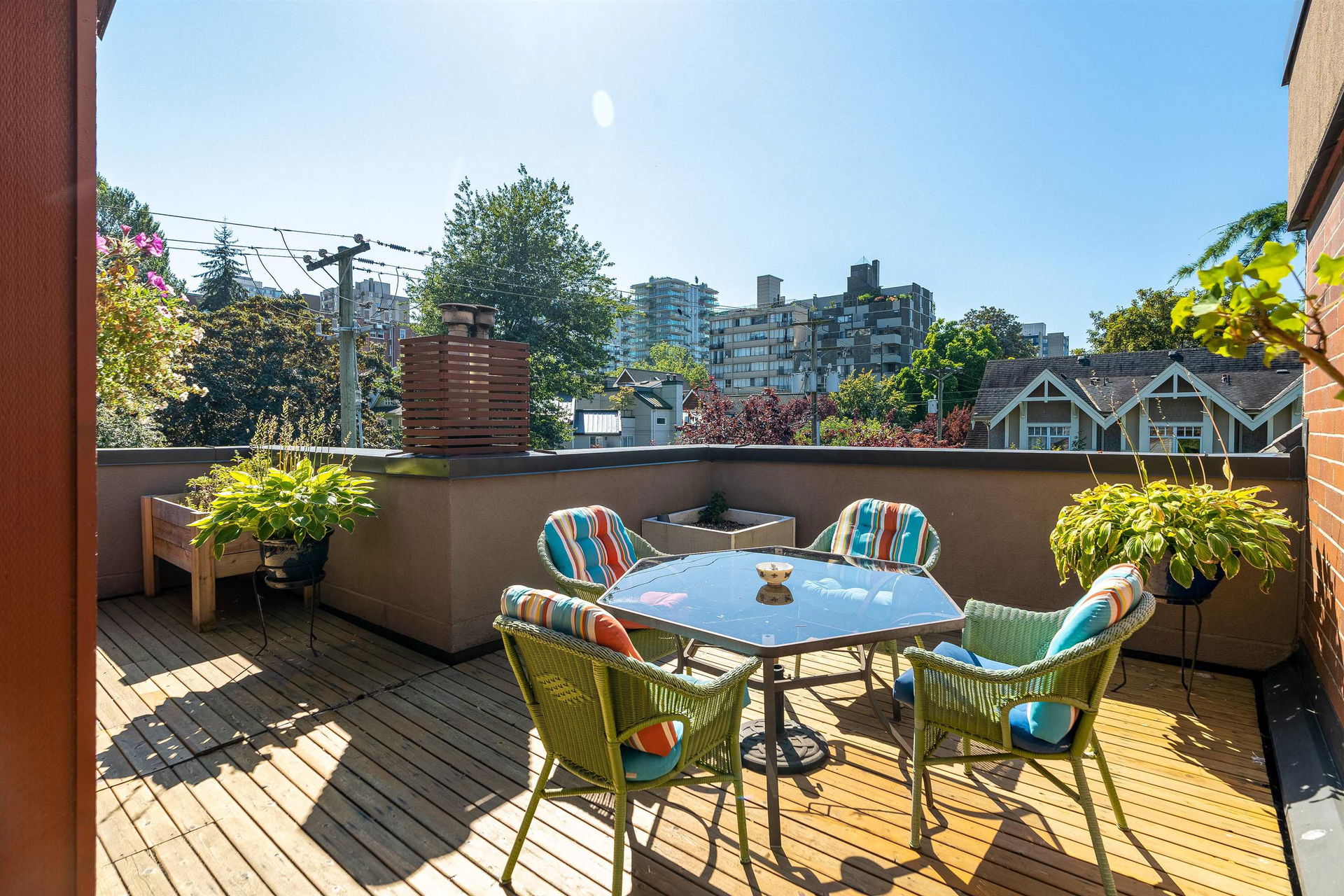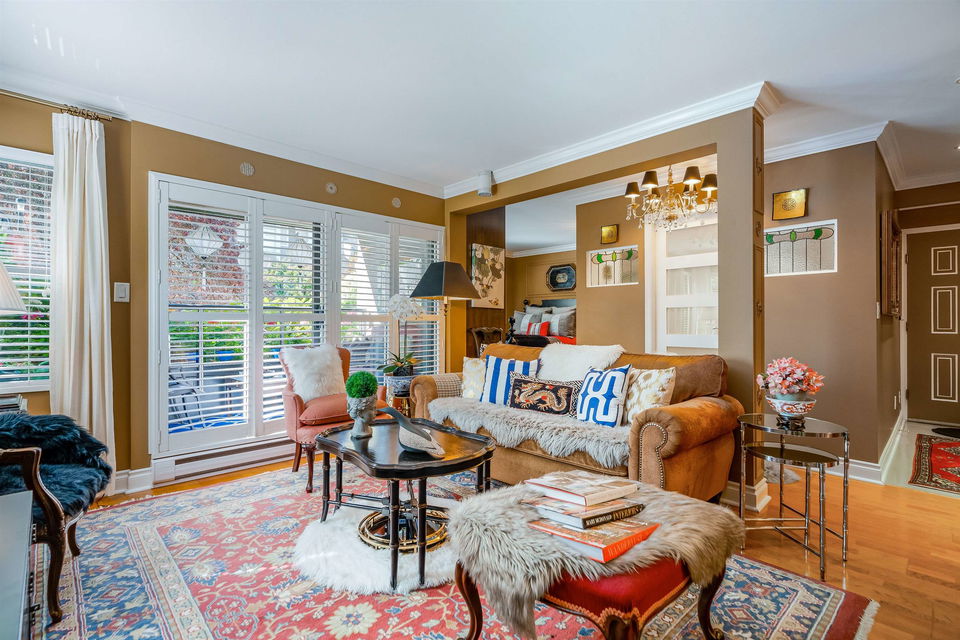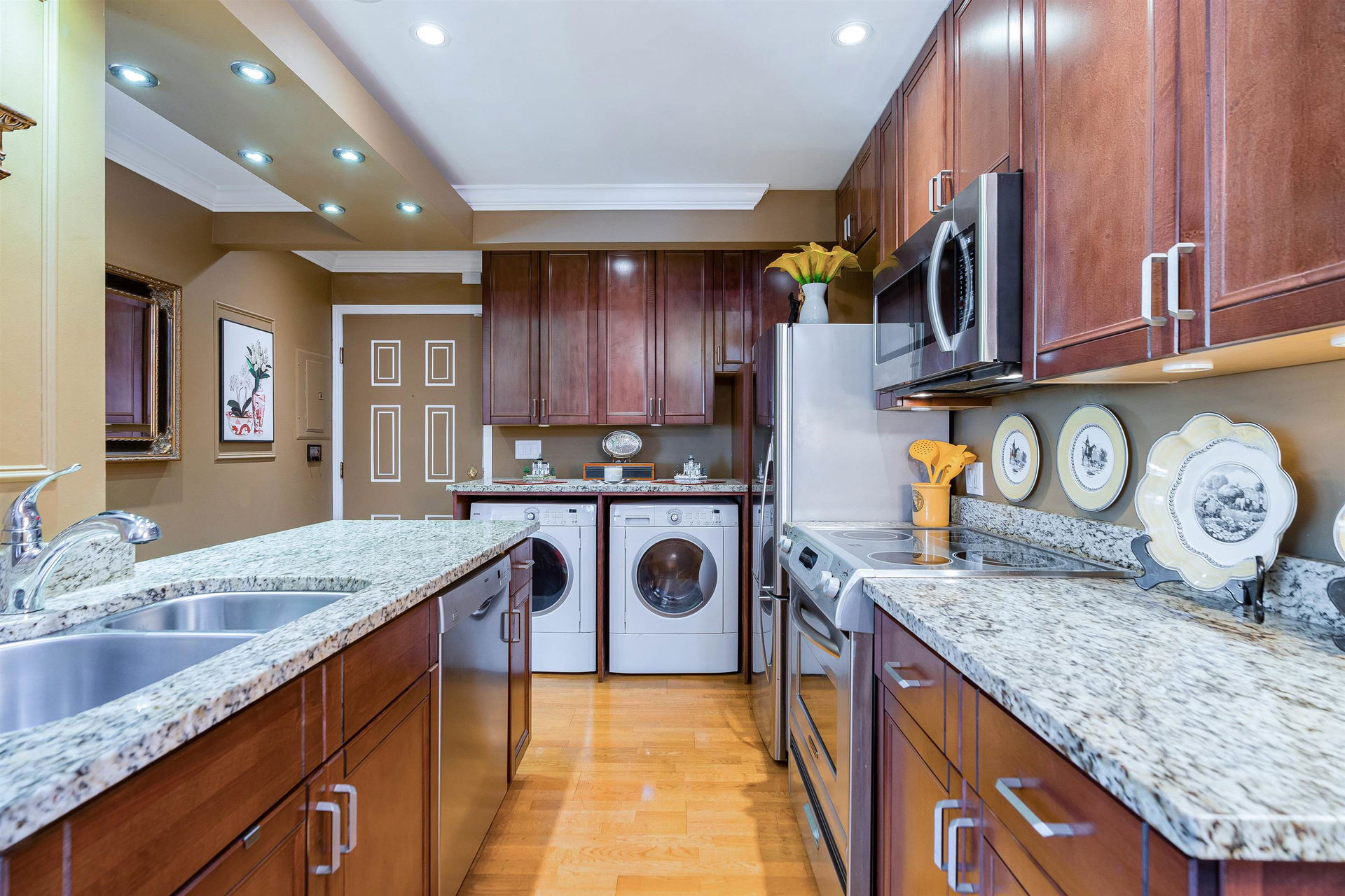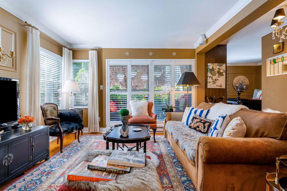 This sophisticated south facing corner home presents a renovated modern open floor plan that’s extremely versatile to many decorating styles. In the heart of the West End along the peaceful treelined Comox corridor your personal oasis is a spacious one bedroom with a chef’s kitchen, elegant Thomasville cabinetry, granite counters and Bosch & Fisher Paykel appliances. A spa-inspired bathroom accessorized with exquisite stained glass, heated tile floors and jetted bath. Engineered hardwood floors, recessed lighting, California shutters, insuite laundry and custom built-ins, along with parking and storage. A fully covered all season patio overlooks a gorgeous, landscaped garden. Pets are welcome. City Pointe is a boutique proactive 8-unit strata, fully rain screened with a common roof deck for entertaining and BBQ’ing. You’ll appreciate this beautiful innovatively designed property that’s perfectly positioned in this welcoming peaceful pocket of the neighbourhood.