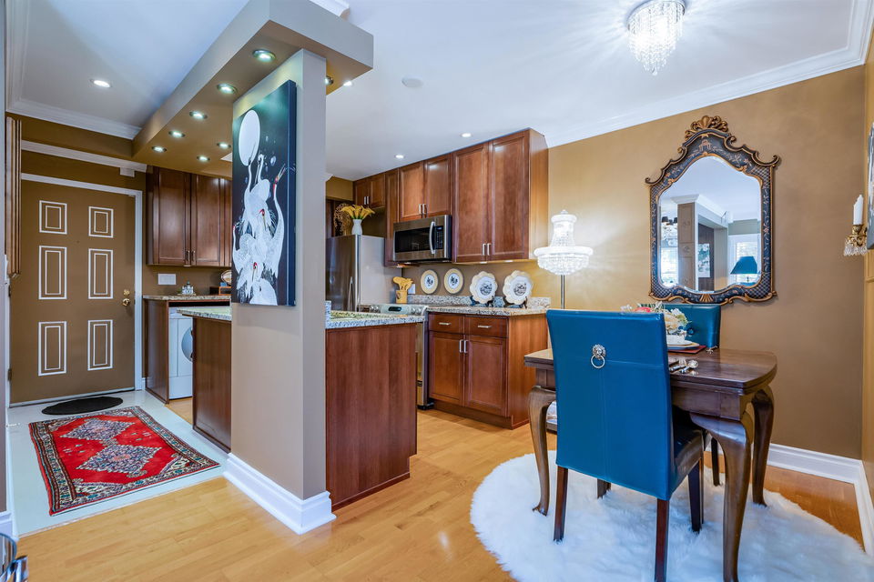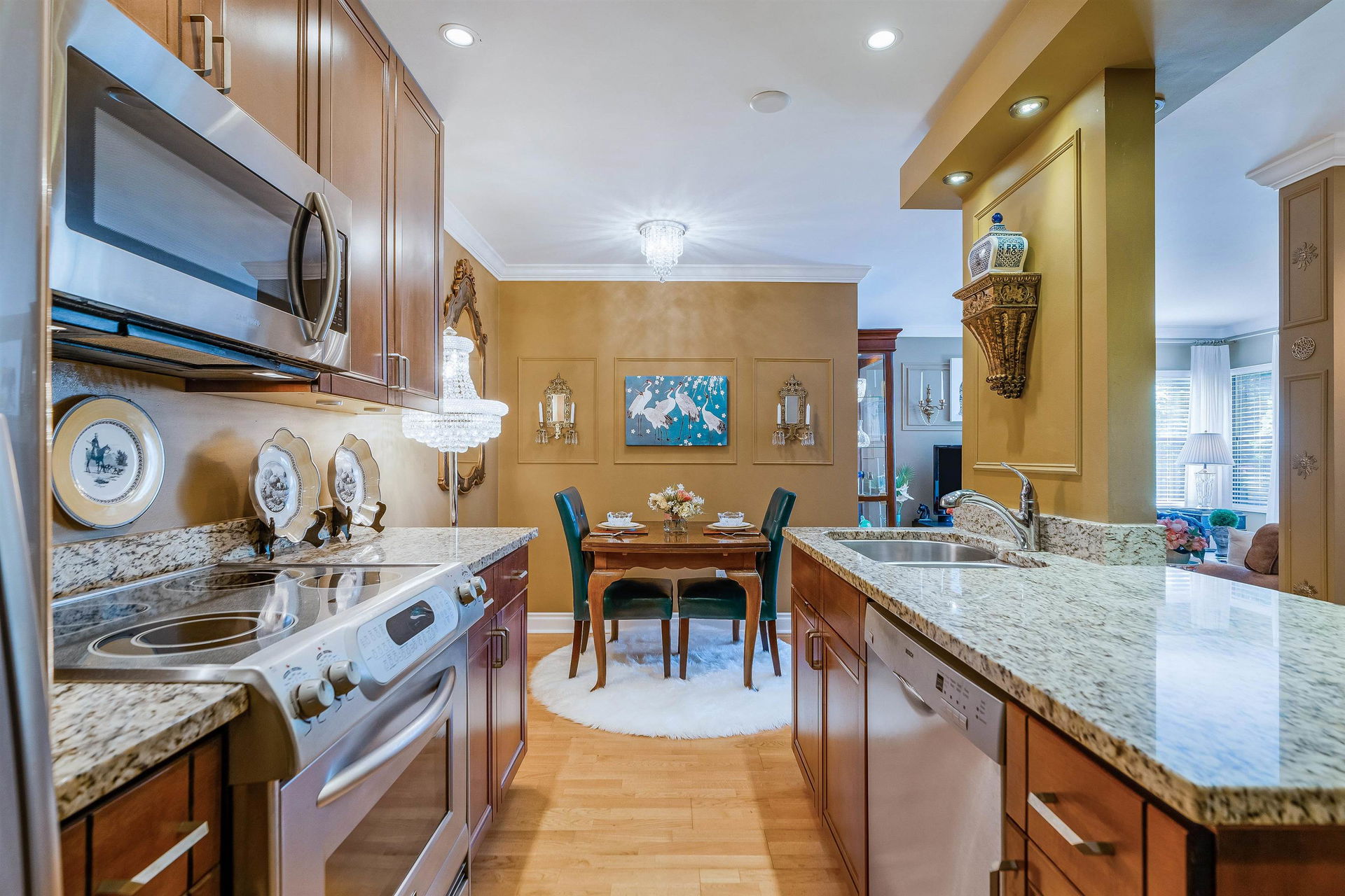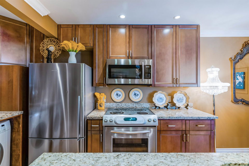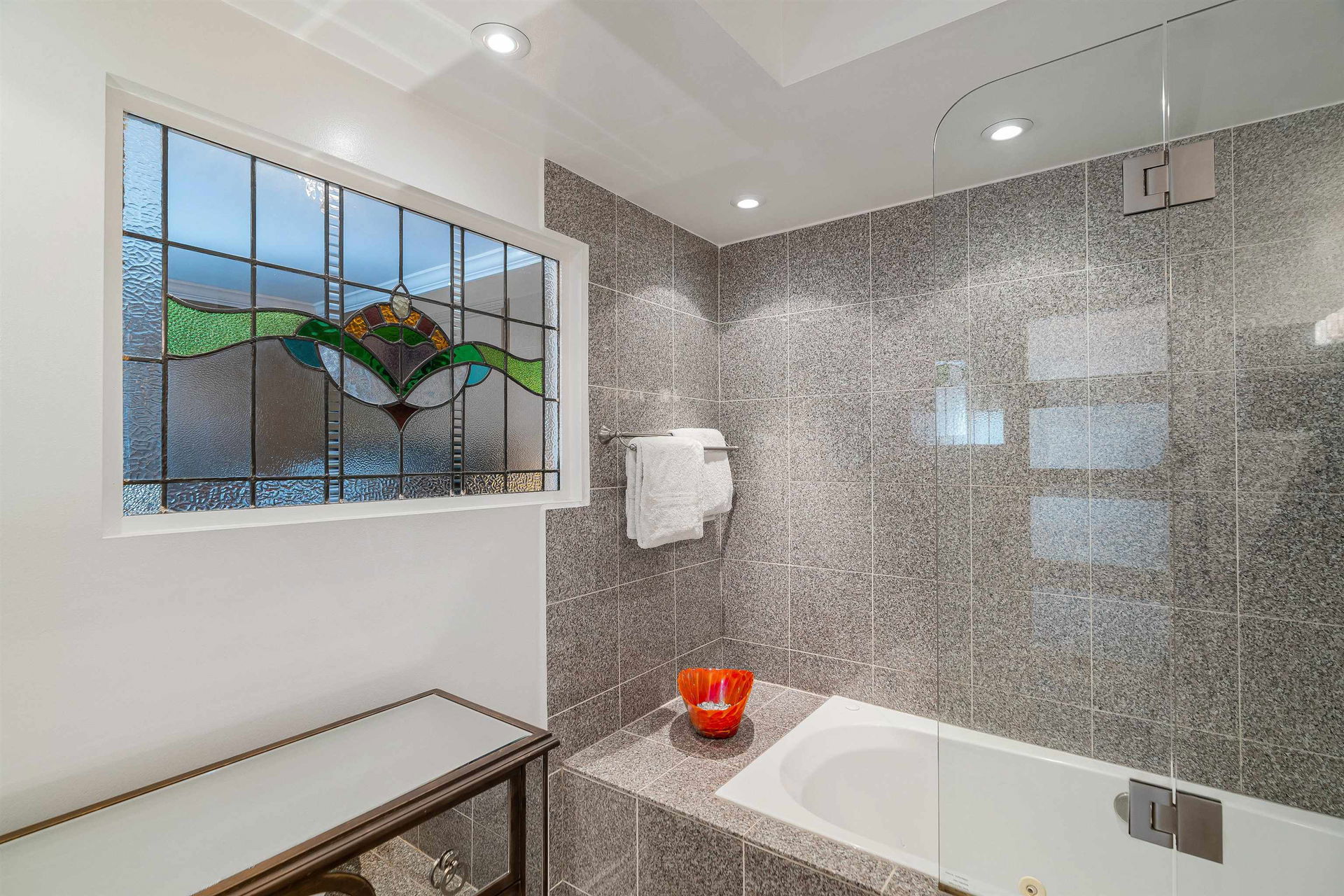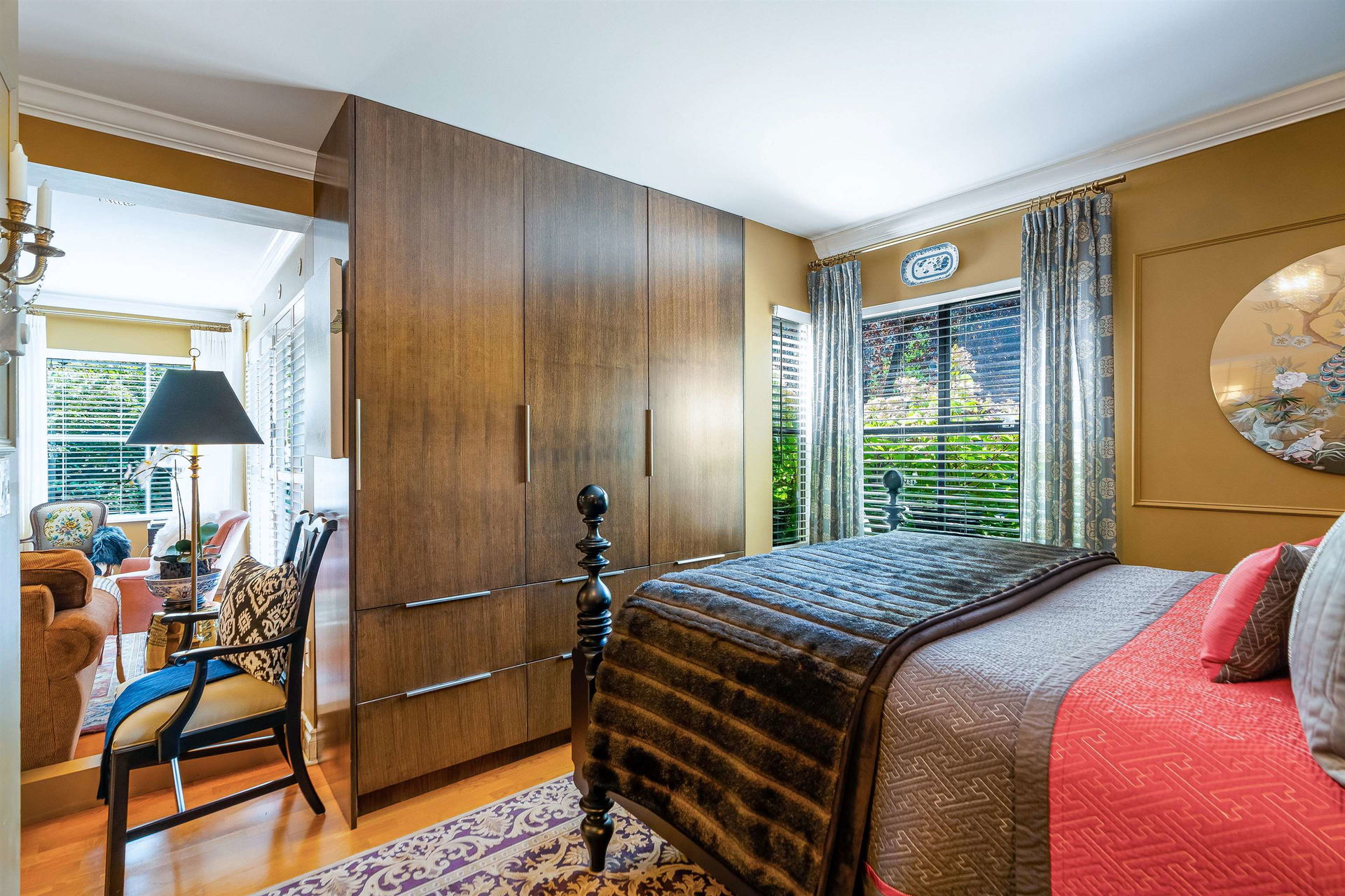 This sophisticated south facing corner home presents a renovated modern open floor plan that’s extremely versatile to many decorating styles. In the heart of the West End along the peaceful treelined Comox corridor your personal oasis is a spacious one bedroom with a chef’s kitchen, elegant Thomasville cabinetry, granite counters and Bosch & Fisher Paykel appliances. A spa-inspired bathroom accessorized with exquisite stained glass, heated tile floors and jetted bath. Engineered hardwood floors, recessed lighting, California shutters, insuite laundry and custom built-ins, along with parking and storage. A fully covered all season patio overlooks a gorgeous, landscaped garden. Pets are welcome. City Pointe is a boutique proactive 8-unit strata, fully rain screened with a common roof deck for entertaining and BBQ’ing. You’ll appreciate this beautiful innovatively designed property that’s perfectly positioned in this welcoming peaceful pocket of the neighbourhood.