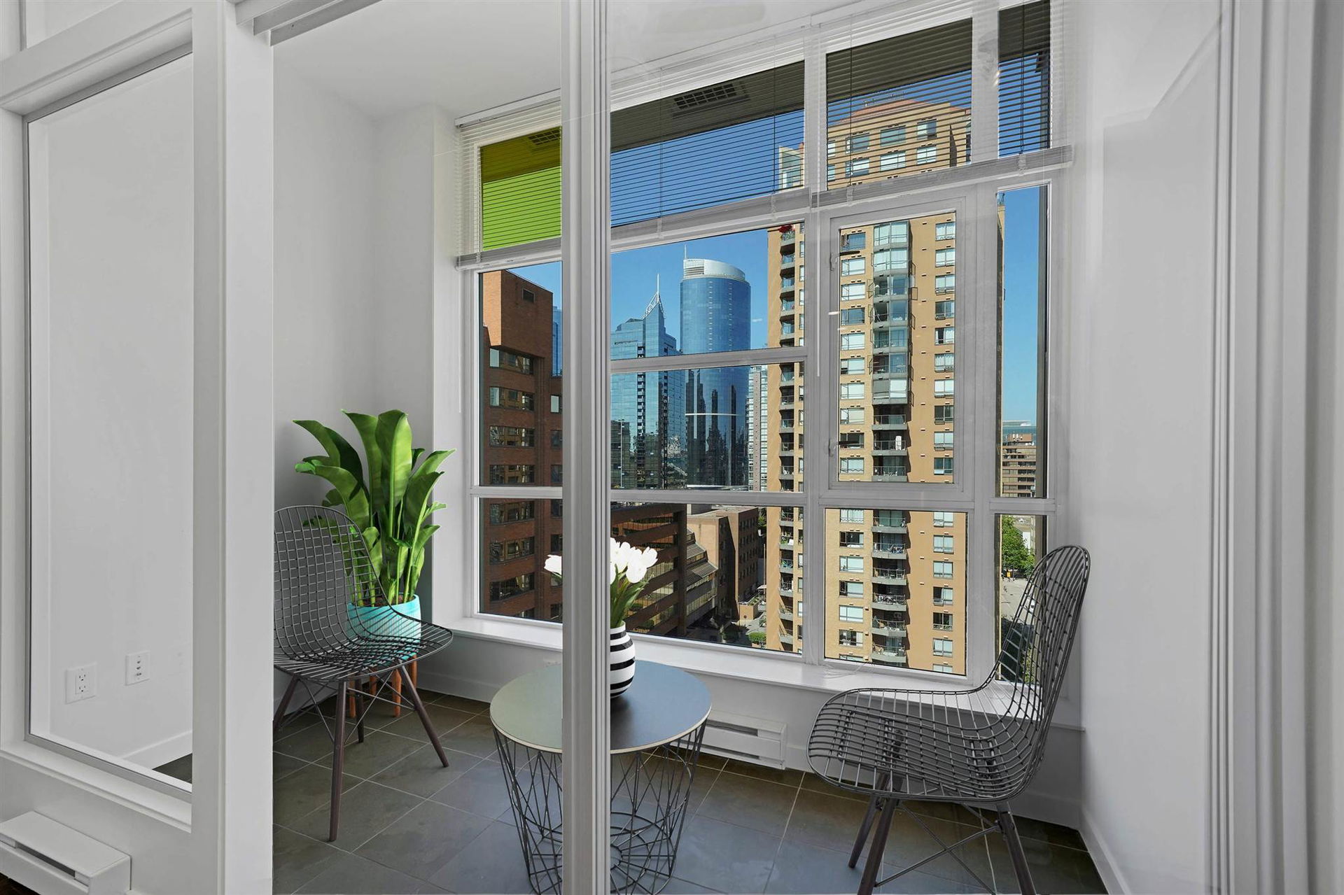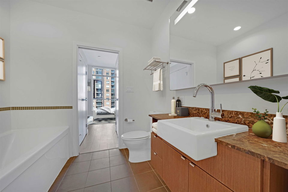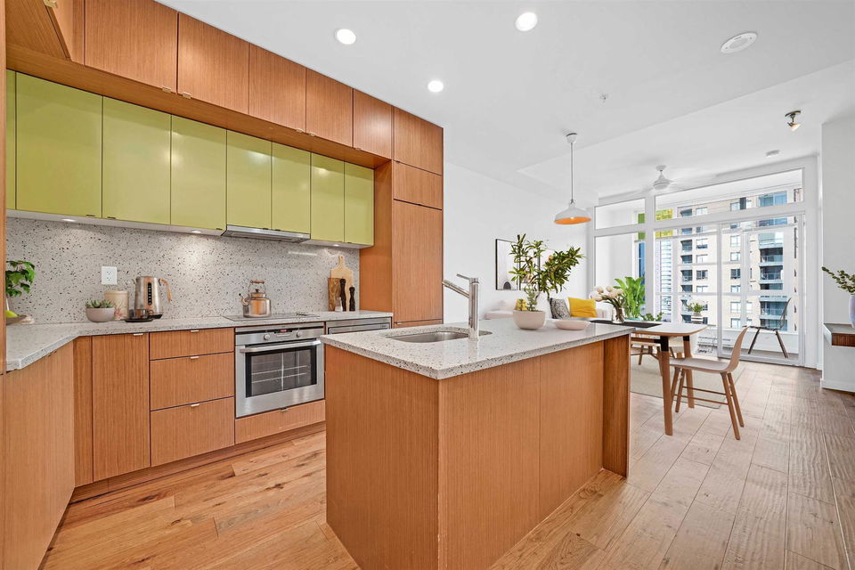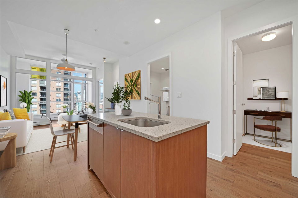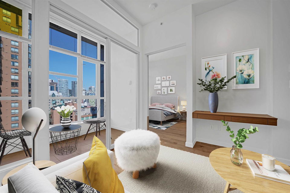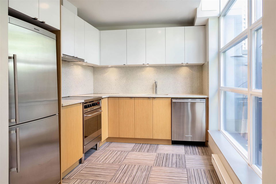 In the heart of downtown at HOWE AND DAVIE is your new home at ALTO! An amazing use of space, this one bedroom, solarium and flex offers ten foot ceilings, floor to ceiling windows and welcoming city views. Functional open concept living with double height cabinetry, kitchen island and integrated European appliances. Walk through closets from the bedroom to a very spacious semi ensuite bathroom with soaker tub and walk in shower. In the solarium you could create an office, den or baby’s room and flex room for a pantry or additional storage. This a desirable modern boutique complex where you can enjoy the 7th floor common room with bar area and outdoor terrace, fireplace and BBQ and the 3rd floor lounge, pool table and meeting room. There’s a place to store your bike, parking for you and visitors and a storage locker. Experience shopping, restaurants, recreation and transit right here! 1205 Howe Street has a Walk Score of 100 out of 100!