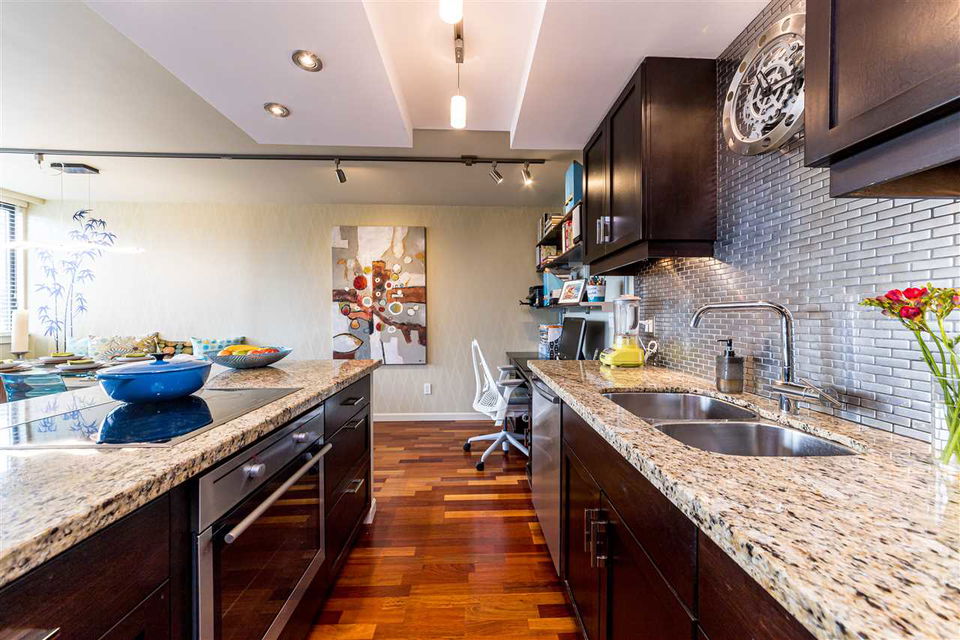 If your ideal home is a bright 1 bedroom with endless city views overlooking a manicured garden, you’ll love this tastefully renovated home at the Sandpiper. An investment or full-time home, the location is second to none! English Bay & Stanley Park just a stroll away. Hardwood flooring, open kitchen, granite counters, stainless steel appliances, an induction stove top, Bosch dishwasher and Blomberg clothes washer. The bathroom with radiant heat, Italian faucets & fixtures is a welcoming spa experience. The bedroom accommodates a king size bed with custom closet organizers & sensor lighting. An enclosed solarium & updated LED lighting in every room. There are numerous upgrades and lots of perks in this well maintained strata. Quality living in a coveted West End neighbourhood!