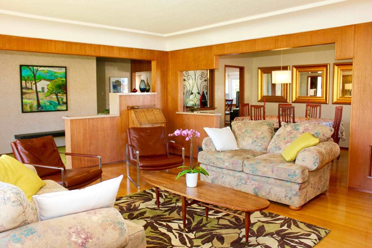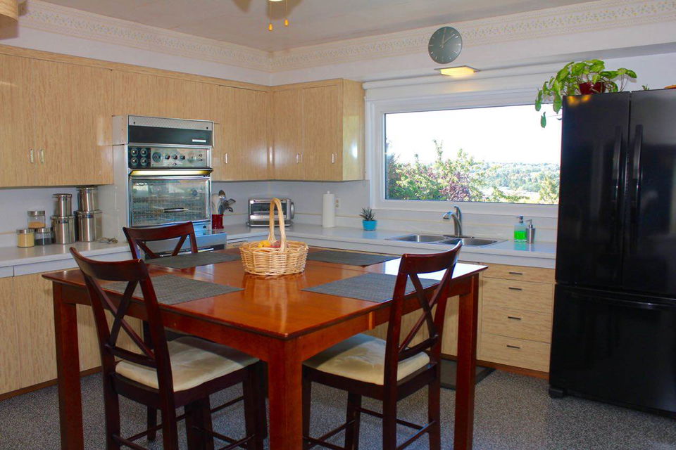 THE HEIGHTS!! This unique mid century home is positioned on a large corner lot with views of the Lions, Grouse Mt and Downtown! Custom built 1954 by the original builder/owner and meticulously maintained by the current owners. Bright, open 3 bedroom rancher with a fully renovated 2 bedroom garden suite surrounded by mature apple & fig trees. Numerous updates include natural gas furnace, updated electrical, increased basement insulation in the suite, roughed in plumbing / electrical for potential ensuite to the Master. All windows have been replaced & upgraded to double-glazed Low E. New appliances up and down with the original 60’s “Flair” by Frigidaire oven. With over 3,400 sq ft this home offers an open flow upper level, with views from every window. An exceptional home for entertaining with a cozy TV/entertainment area, custom retro bar, gas fireplace, fitness area, generous storage and direct access to the garage. This home is special!