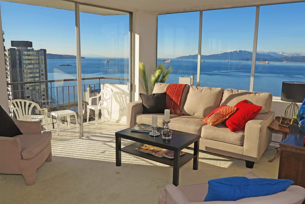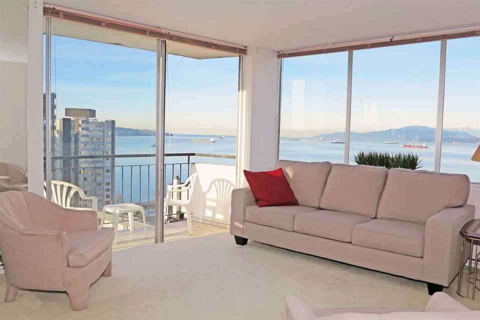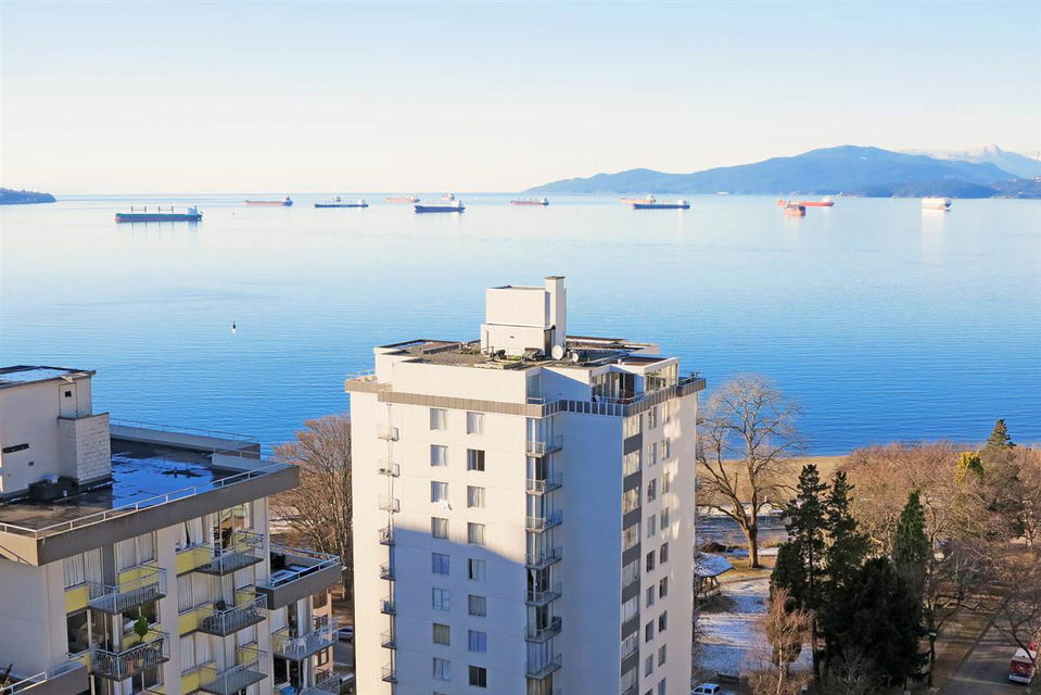 TOTALLY UNOBSTRUCTED WATER VIEWS. Breathtaking water and mountain views to English Bay and False Creek and the North Shore Mountains from every window of this rarely available offering at THE SURFCREST. Sought-after South West corner boasts amazing ocean views, light and fresh ocean air. Large sunny open balcony. Situated steps to English Bay, Stanley Park and the coffee shops of Denman St. Solid concrete in the heart of the English Bay neighborhood. Building has heated lap pool, sauna, excellent management and is currently planning some upgrades to improve the exterior and interior piping. Well worth the investment. Monthly maintenance fee includes heat, all municipal taxes and you get a tax rebate from your maintenance fee. Live the good life on the beach. No pets. Hurry! Won’t last!