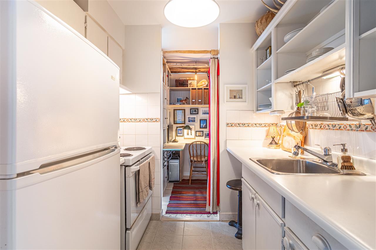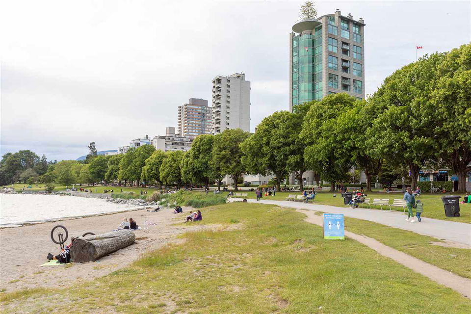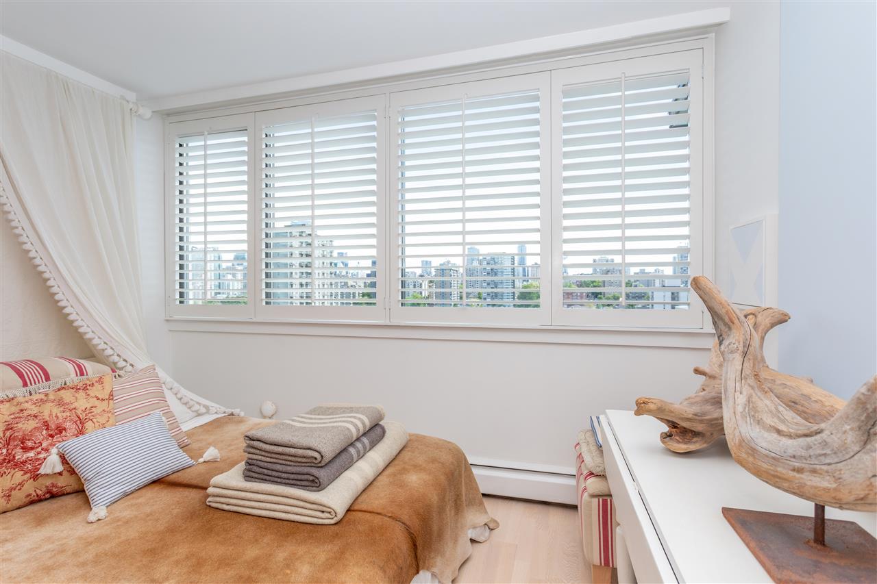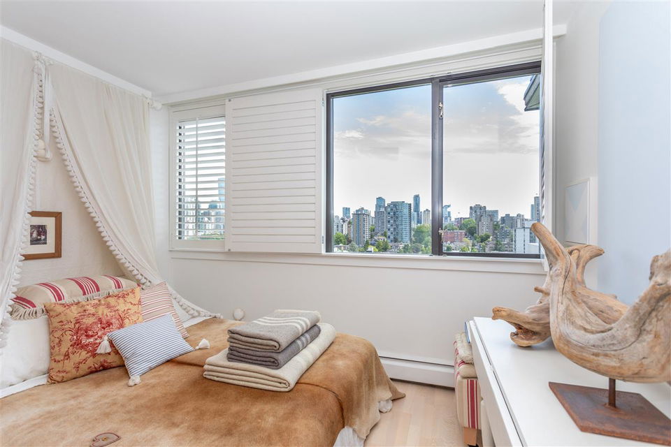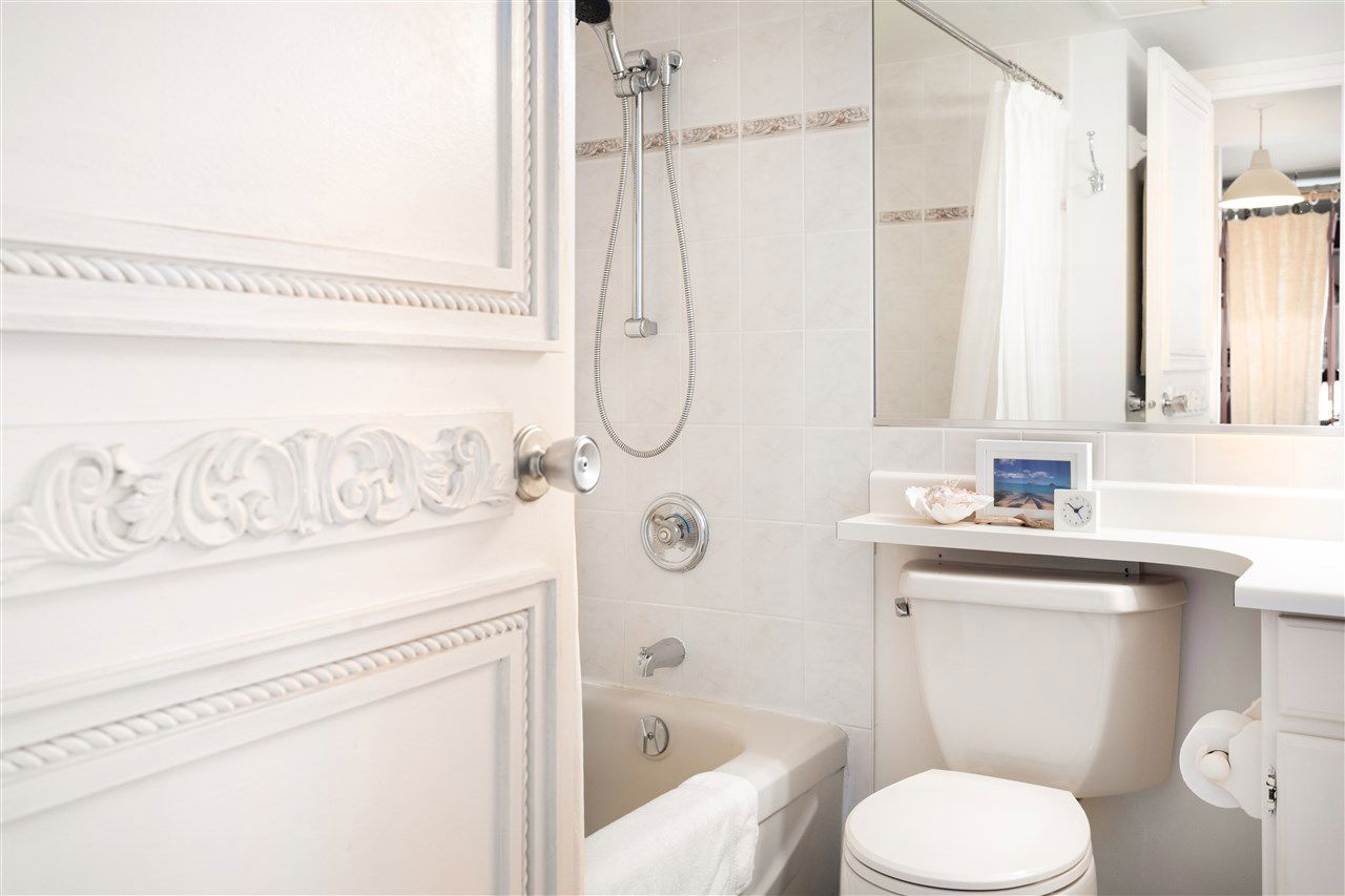 This artistic retreat combines a garden filled solarium with French country inspiration creating a private 1 bedroom in the desirable West End! European ash hardwood floors blended with Italian ceramic tiles. California wood shutters casing the windows & patio sliders. Uniquely designed & maximizing every inch of space. Bright & airy with floor to ceiling mirrored walls. Eastern views of the City, mountains & the strata’s gorgeous secluded garden. An abundance of well designed storage. Investment or full-time home, this is about location! English Bay & Stanley Park just a stroll away. The Sandpiper is a well maintained concrete residence with a full-time manager on site & pets are welcome. All set on a quiet tree-lined street with the City’s bike lane right outside your door!