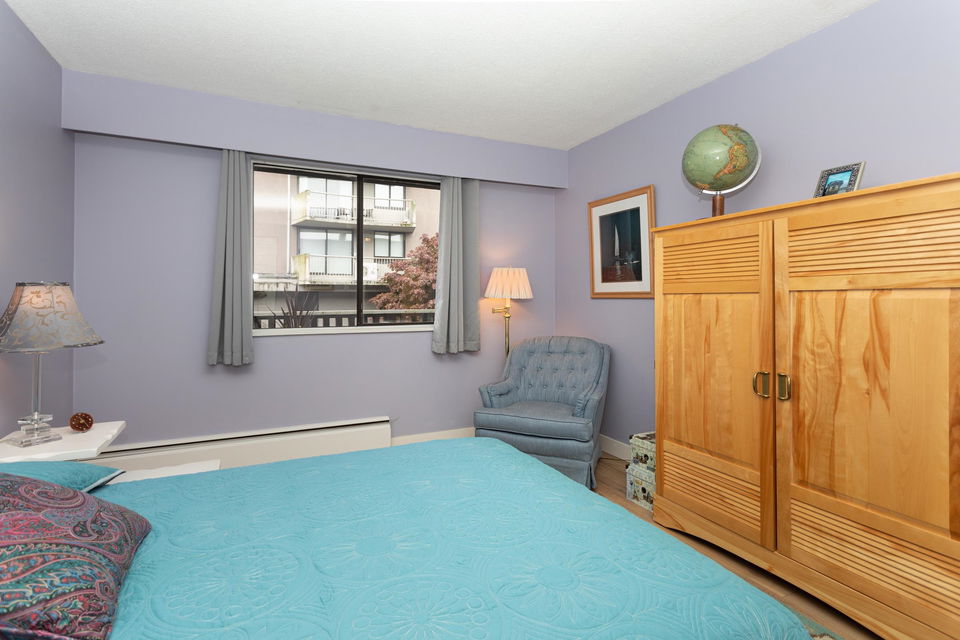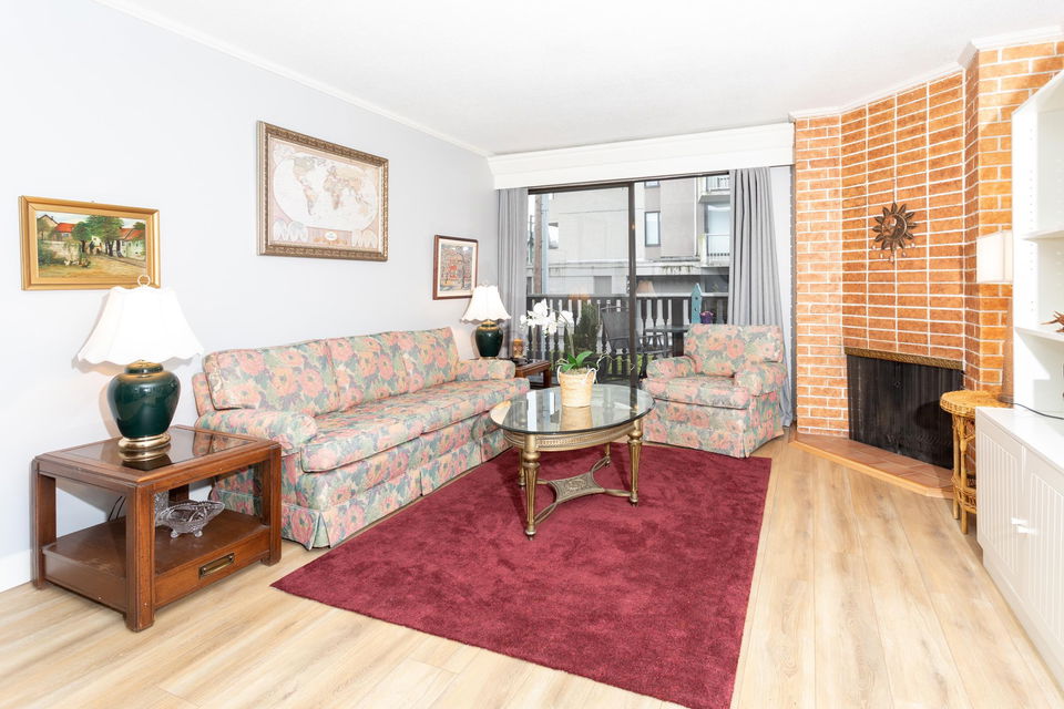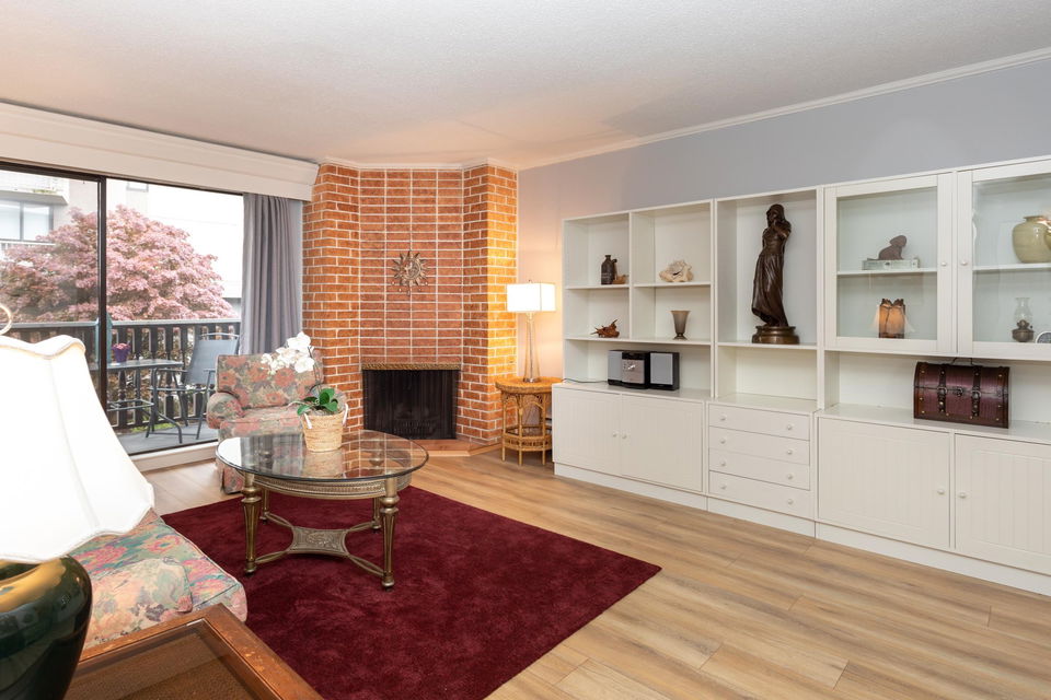 This is the LARGEST 1 bedroom on the market in the heart of Central Lonsdale! Large principal rooms, updated flooring, insuite laundry, wood burning fireplace, walk-in bedroom closet, storage, storage and more storage, partial mountain views from a 132 sq ft east facing balcony. Located on the bright, quiet side of the building. They don’t build them like this anymore! Canterbury House is a well established owner occupied building with many long term residents. Heat and hot water are included. Pets are welcome with some restrictions. The new Community Centre is a stroll away, along with the Library and transit. This neighbourhood is a culinary gem and local cultural hub with cafes, bakeries, shops, restaurants, and plenty of other local businesses that make the area feel both welcoming and community focused. Unbeatable Location!
