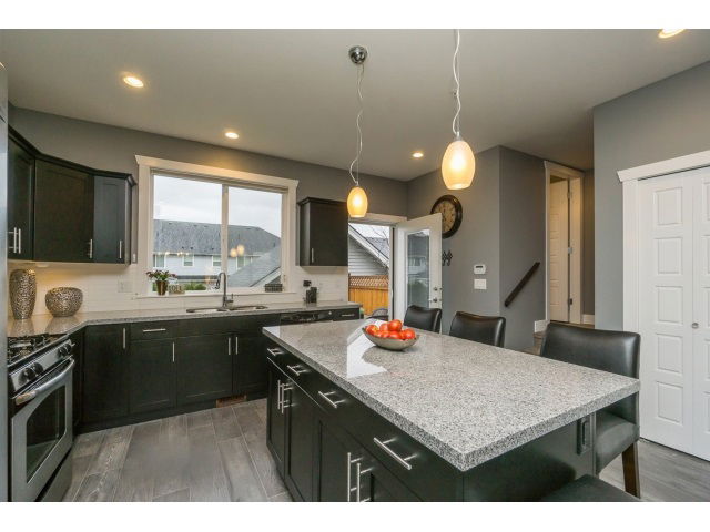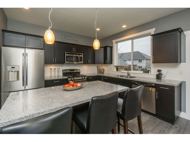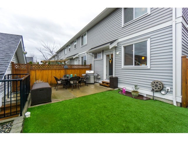 RAB built Kingsbury Court in popular Yorkson South neighbourhood. Spacious END unit Row home w/NO Strata fees & approx. $20k in professional upgrades. Boasting new wide plank laminate flooring on the main floor, new carpet on the upper level, fresh paint on both main and upper floor, upgraded light fixtures, new washer/dryer, up/down blinds on the main floor, phantom screen door. The exterior has been upgraded w/an enlarged patio, astro turf w/20 year warranty & driveway has been recently asphalted. This 4 bedroom 4 bathroom home shows pride in ownership, offers a great rec room with surround sound, an open layout on the main w/granite kitchen incl. gas stove & s/s appliances. Gas BBQ hookup too! Open House March 5 from 11-2pm