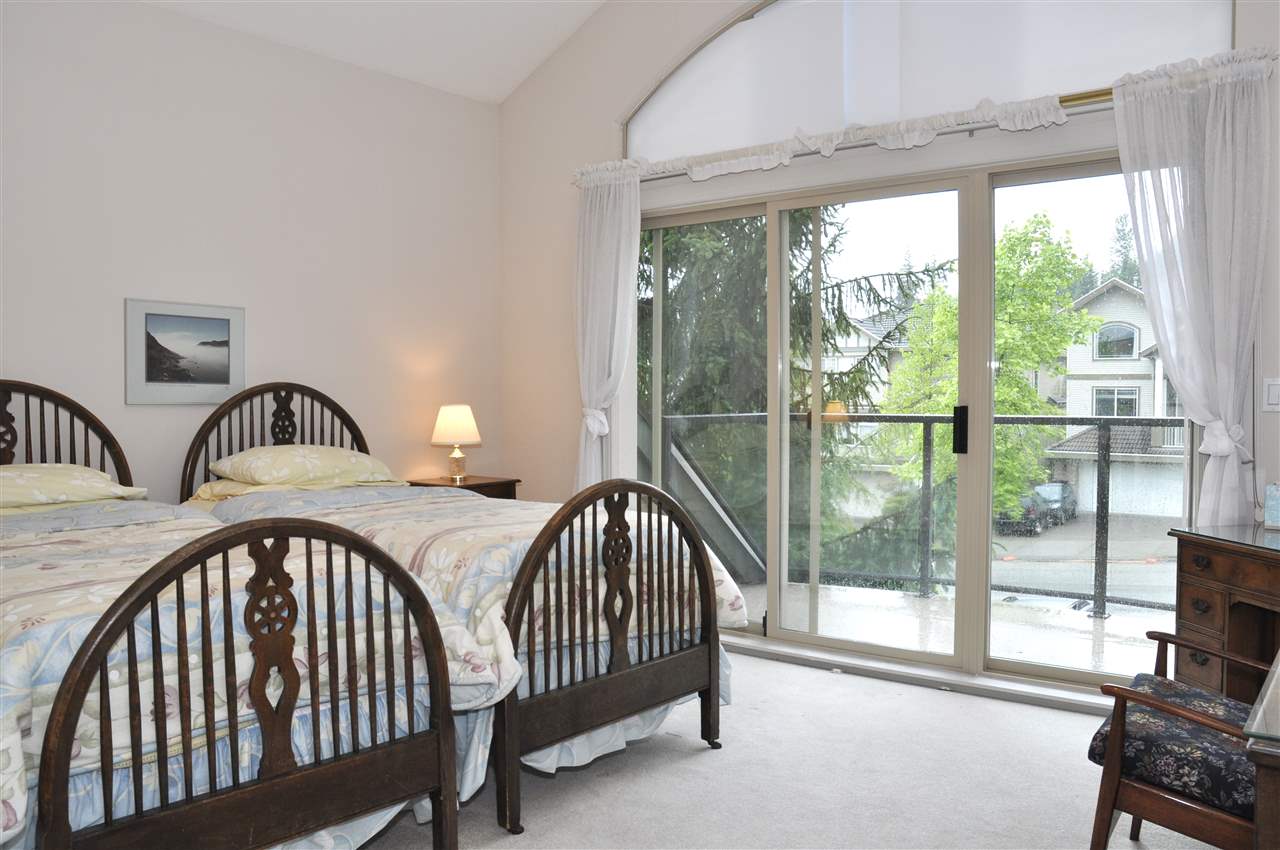 Here is an exceptional opportunity!This impeccable single-owner home, on sought-after Westwood Plateau, was the original the show home. With many developer upgrades it backs onto a forested greenbelt and hiking trails. Quiet and peaceful, yet close to shopping, schools and transit. The house is positioned on three levels, ideal for a growing family or for entertaining. A spacious foyer on the main floor leads to an open concept living area with gorgeous maple flooring and comprises a kitchen, an abundance of cabinets, updated quartz island, spacious dining room, a family room overlooking the sunken sitting room and enlarged balcony, with a spectacular view of Mount Baker and the Fraser Valley. Upstairs there are three bedrooms, the Master “Room with a View” features a glass covered deck, a double-sided gas fireplace and spacious bathroom. The lower level opens directly onto a large private garden with a large bedroom, ample space for family and guests or possibly turned into a suite with City permits!