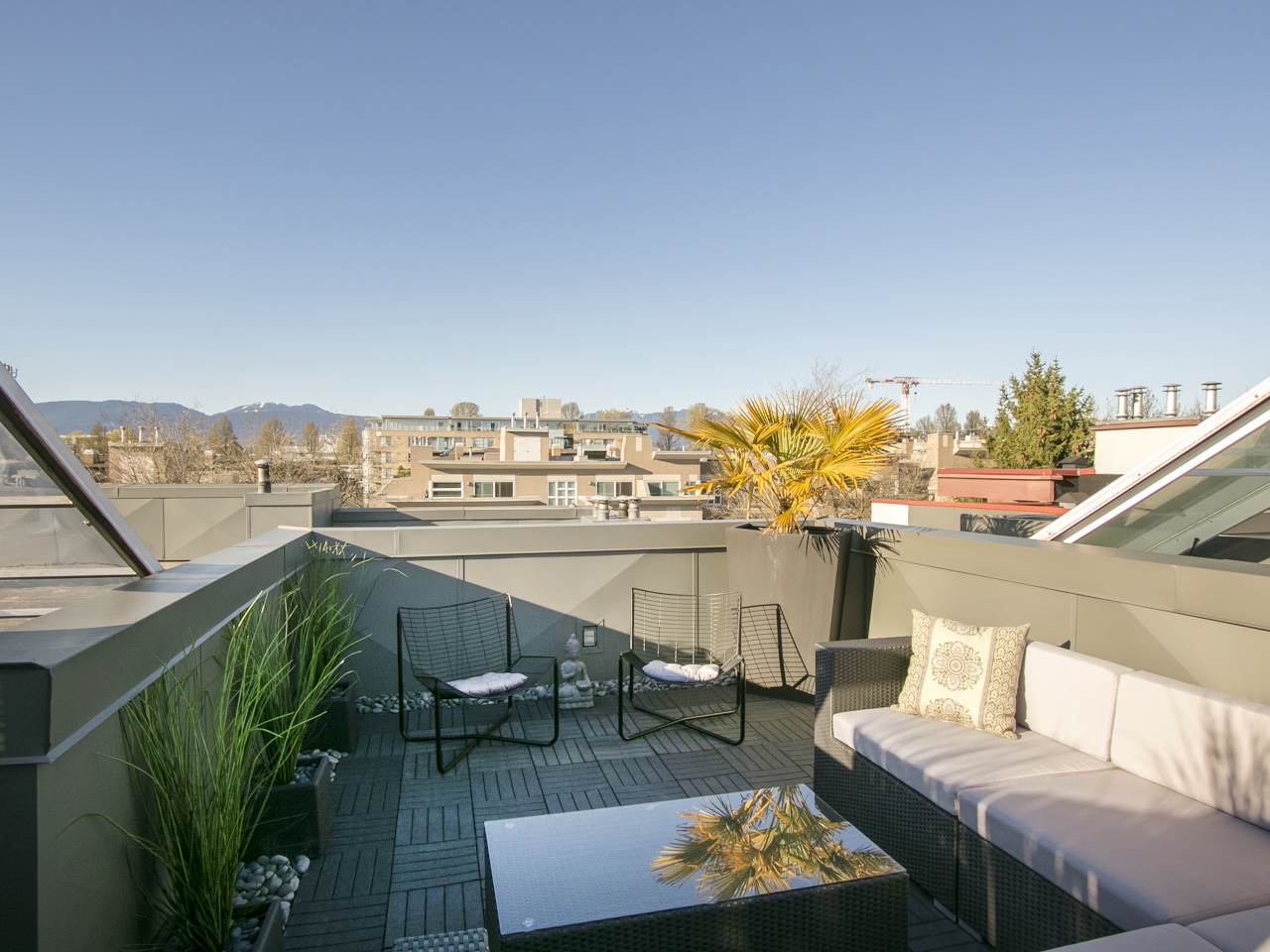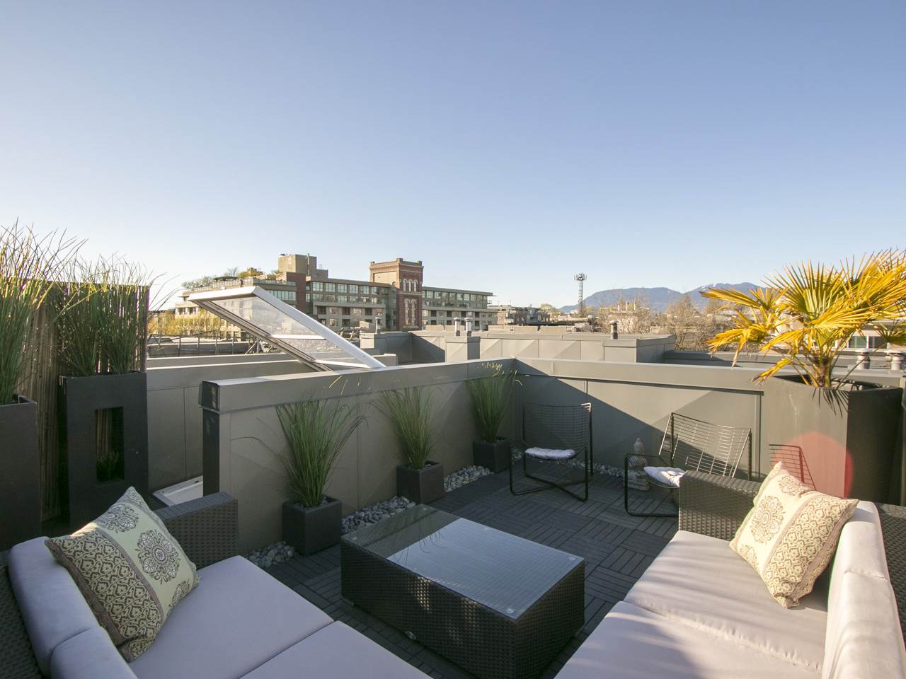 If loft living in Van West’s most sought after neighbourhood is on your bucket list, we’ve got you covered. This modern loft ticks all the boxes with unlimited rentals, storage, laundry, parking & pets. Aside from being the perfect investment, it boasts a large, serene, & PRIVATE rooftop patio as well as another large covered patio off the living room. The space is bathed in beautiful natural light thanks to two large skylights, floor to ceiling windows, 11 foot ceilings & oversized french doors. The loft style sleeping area maximizes the available living space, & the unit’s close proximity to parks, beaches, UBC, & restaurants makes this one a step above the rest!