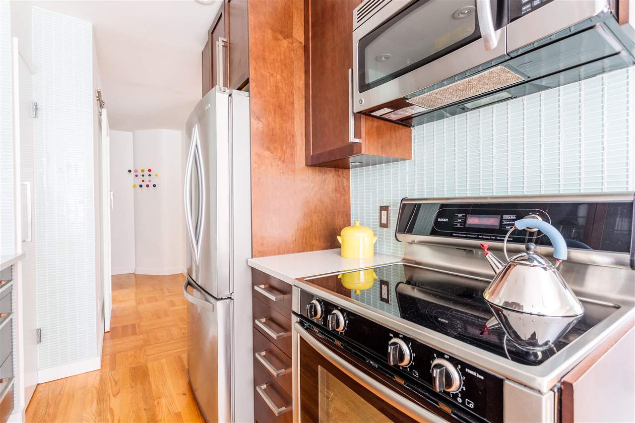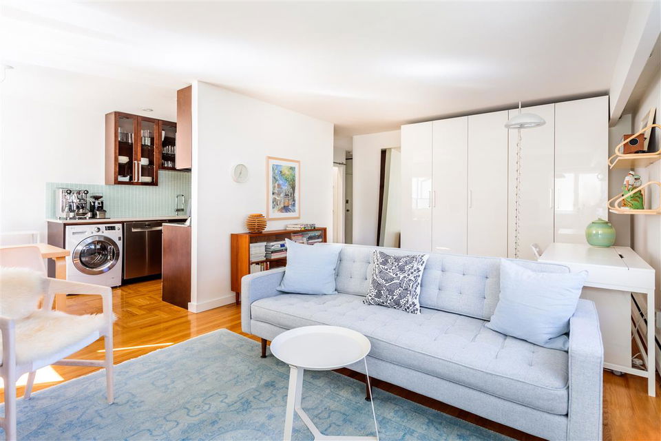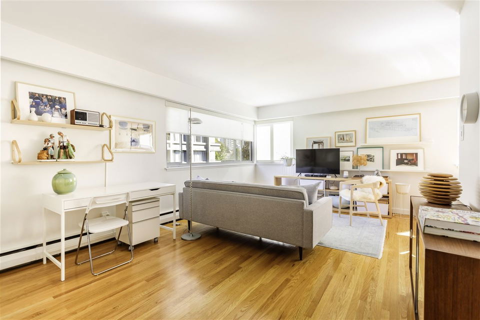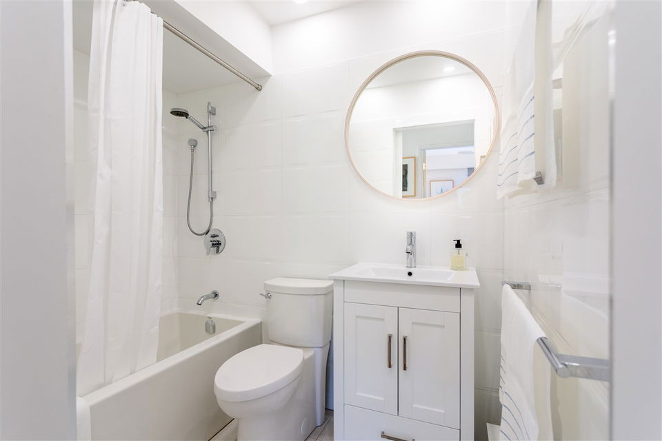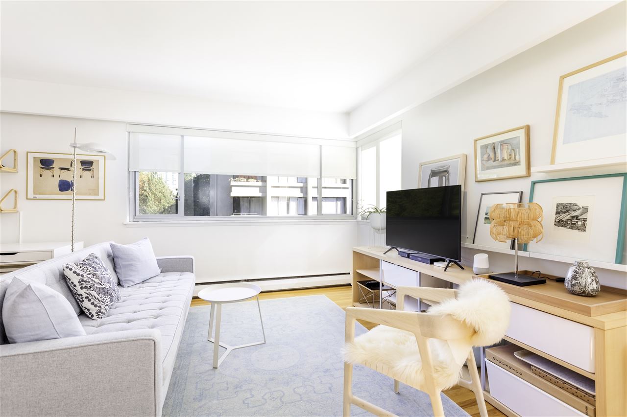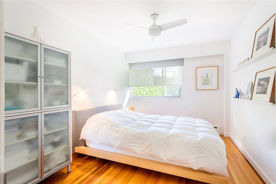 Impeccable, pristine, immaculate easily describe this picture perfect property! Top floor, north east 1 bedroom with an abundance of light streaming through windows on all sides of this 652 sq.ft corner suite. This fully renovated home is designed to accentuate it’s modernist style and appointed with tasteful contemporary features. Gleaming oak hardwood floors, stainless kitchen, Kitchencraft solid maple cabinets, quartz counters with sleek glass tiles. You will love the gorgeous sparkling luxury white bathroom with oversized polished tiling and deep soaker tub to soothe away the pressures of the day. Add to all of this perfection is storage, insuite laundry, locker and parking. Positioned in the heart of the West End, Jervis Manor is a boutique 50’s character retro building with deco features. A desirable worry free strata with updated central heating boilers, thermal windows and roof. Two blocks south to Davie St. and three blocks north to Robson St. is ideal convenience. Walk score is 94!