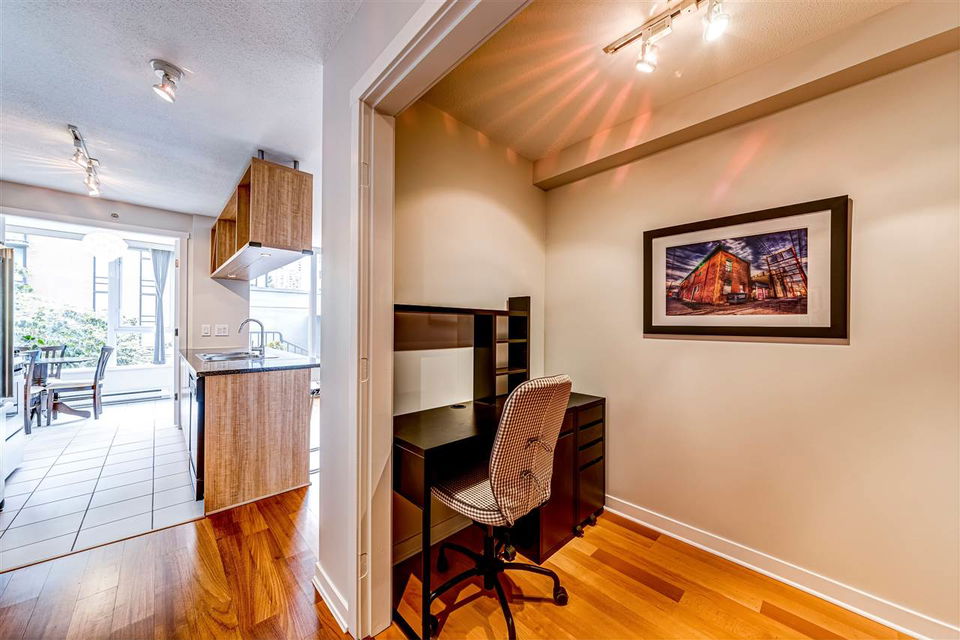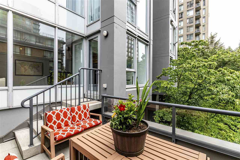 You’ve found it! The only suite at The Gallery offering an oversized 107 sqft south-facing roof top patio overlooking a beautifully landscaped courtyard; an amazingly quiet and secluded outdoor space to garden, relax or entertain. Immaculate one bedroom, bath, office and solarium with abundant natural light on two sides (corner-unit), highly efficient floor plan, open kitchen, granite counters, gas stove, in-suite laundry and hardwood throughout. Parking and storage locker included. Impeccably kept Yaletown property, famous for its devoted resident manager, stylish social rooms, billiards, exercise centre, hot tub and library-lounge. Two parks only steps away, seawall nearby, plus dining, entertainment and excellent city amenities. Quality luxury by Polygon fulfils your urban lifestyle!