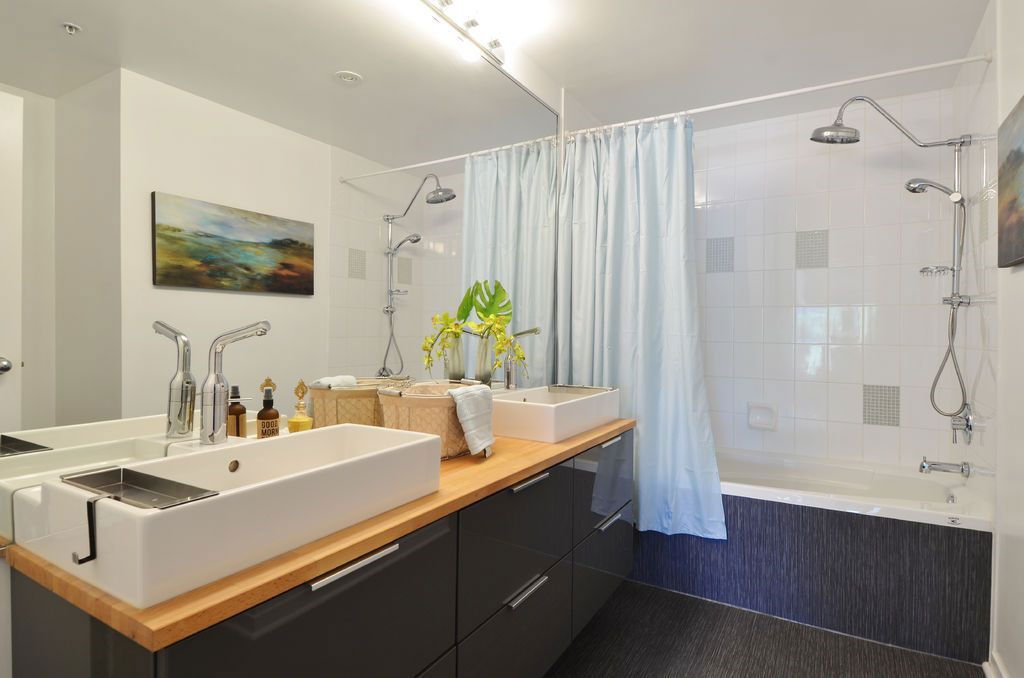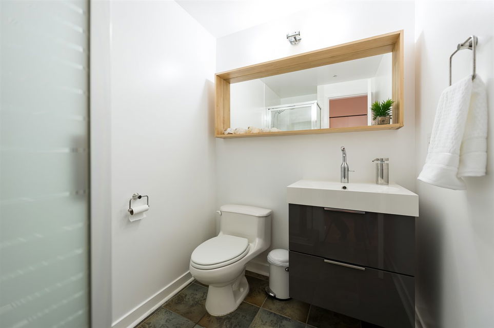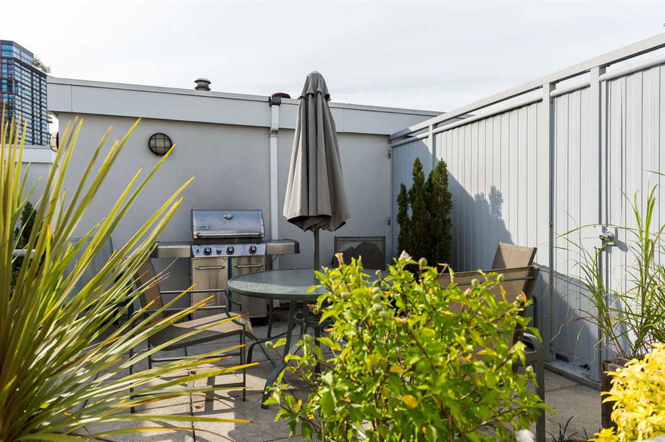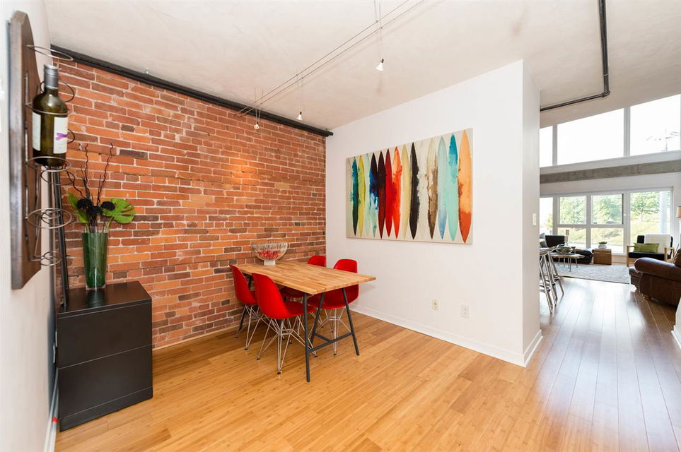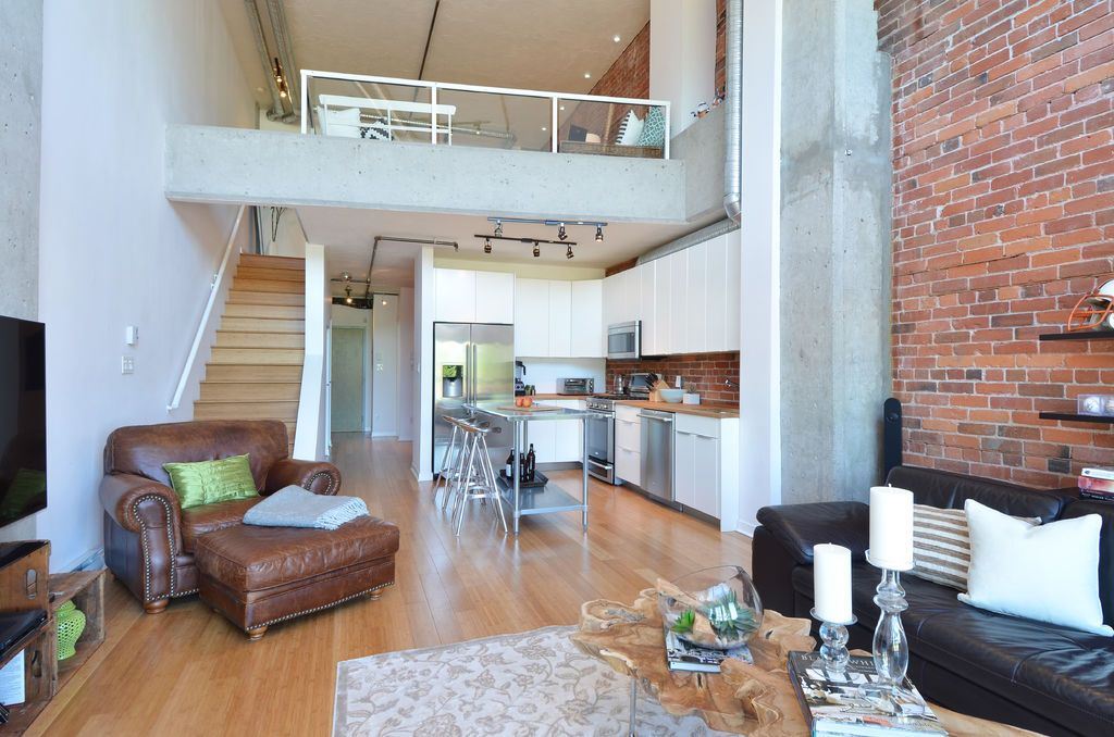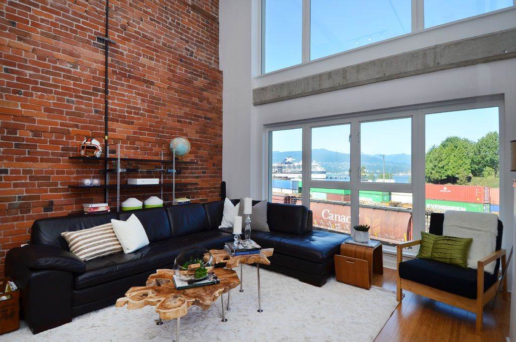 Soaring North Shore Mountain views greet this two-level 1BR/2BA loft everyday, melding modernity w/ Gastown heritage. Double-height ceilings are bolstered by sandblasted brick walls, contrasted by bamboo floors for a bright open space. Watch trains roll by while relaxing in front of the fireplace, or watch cruise ships leave port from the rooftop deck. Completely renovated in 2011, an inviting kitchen feat. butcher block countertops & stainless steel appliances – perfect for cooks who love sharing creations w/ friends. Located on Gastown’s most desirable block. Close to chic boutiques & some of Vancouver’s best restaurants – perfect for people watching. OPEN HOUSE Oct 1st from 4-6PM