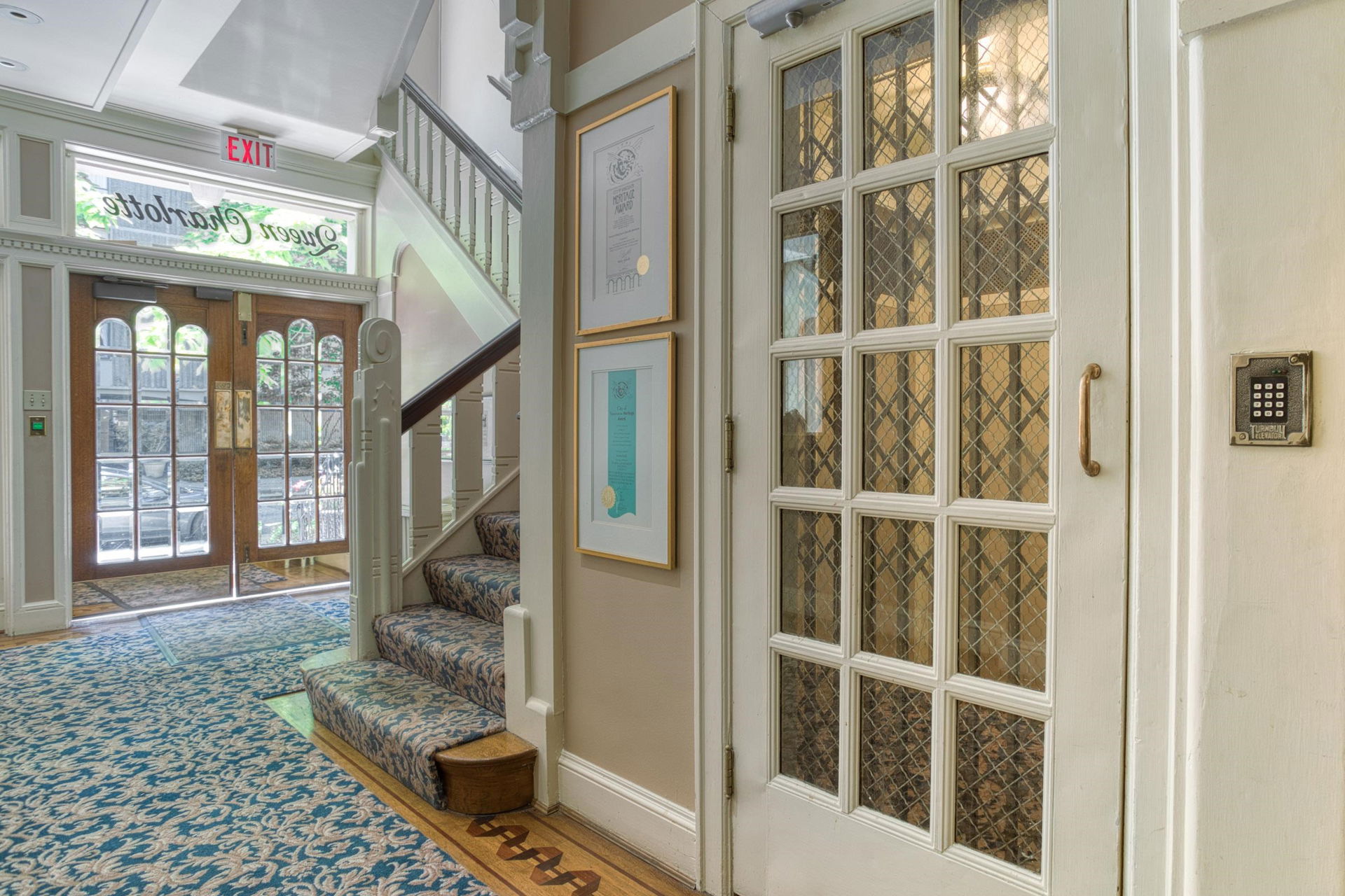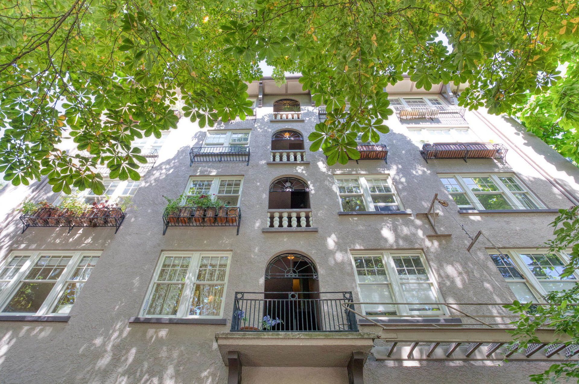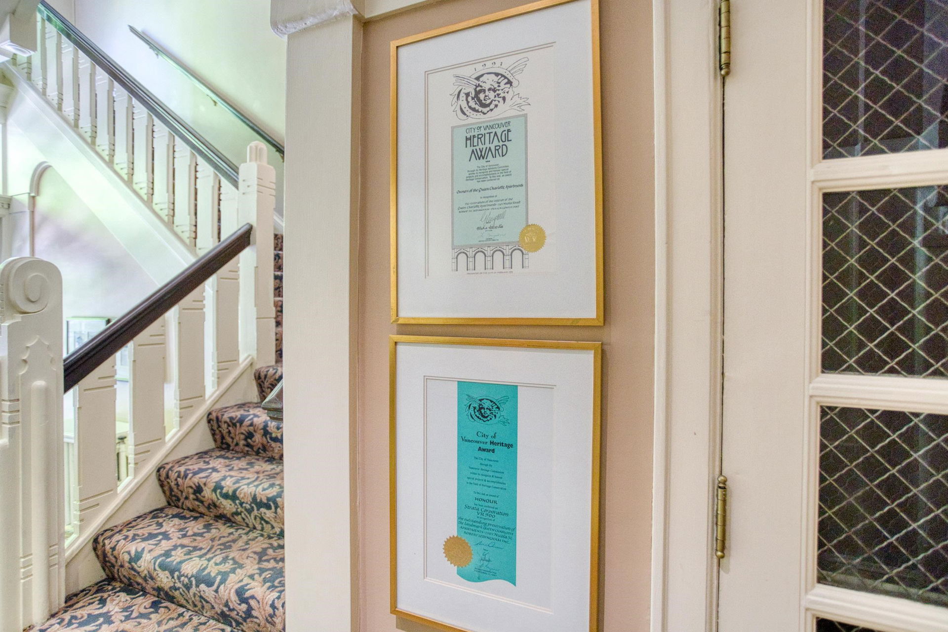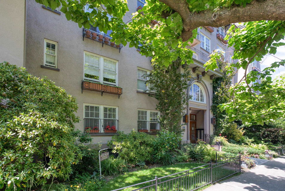 An opportunity to own a home of unique Heritage distinction. Nestled in the foliage of catalpa and chestnut trees, this stylish two bedroom home at the historic “Queen Charlotte” presents subtle richness and sophistication. An elegant corner residence, impressive sized rooms, no shared walls, classic moldings, French doors, 9 ft ceilings and inlay oak hardwood floors – all blending seamlessly with contemporary updates. This airy property is poised on the 3rd floor, with southeast exposure, tons of light, large casement windows, updated kitchen and appliances. Gorgeous architectural finishes, with floor to ceiling bookshelves in the bedroom/office and a walk-in closet in the primary bedroom. Solid reinforced concrete construction. Lovingly cared for, with a common terrace where neighbours can enjoy a coffee or glass of wine. English Bay a 5-minute walk away. This West End landmark is a property you’ll love to call home! Viewings by appointment.
