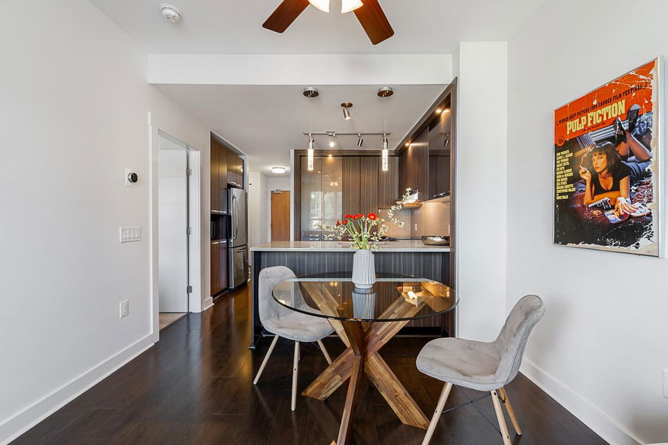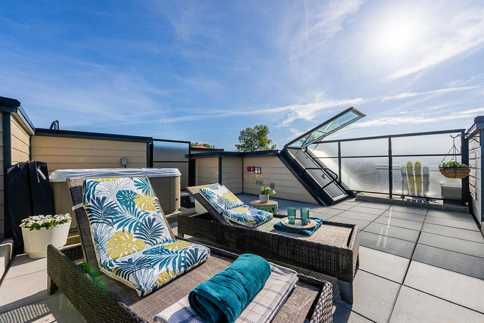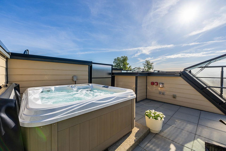 Wow!! Gorgeous One Bed & One Bath PENTHOUSE Condo featuring a massive 382 sq. ft. private rooftop patio with HOT TUB and PANORAMIC VIEWS!!The main floor also boast a large covered balcony perfect for entertaining YEAR ROUND. Features include 9 foot ceilings, sleek stainless steel appliances, radiant hot water heat, full size washer and dryer and bonus insuite storage.If you are a fan of fantastic rooftop patio entertaining ,this home is calling your name. Amenities include an Air conditioned Gym!This boutique building is located in Mosquito Creek steps to shops, restaurants, Black Kettle Brewery, Bad Dog Bread, Cafe Orto, Thomas Hass, Harbourside Park and transit. Pet=yes