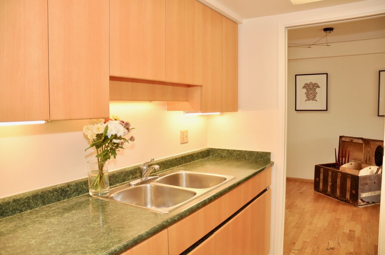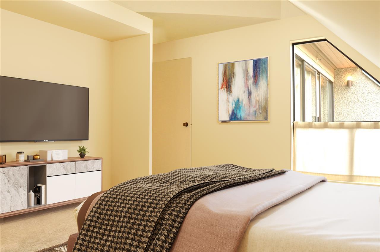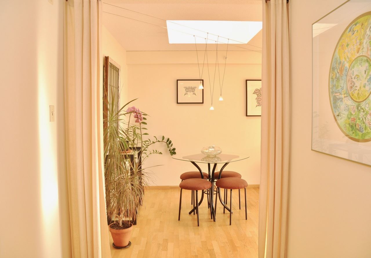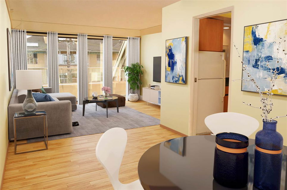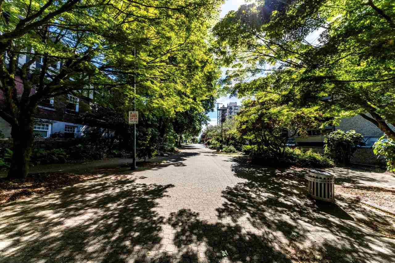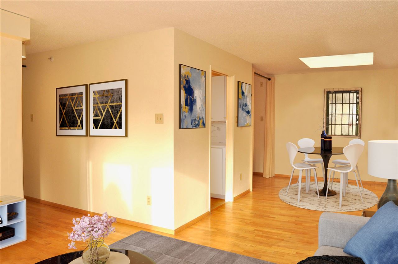 If you have a vision, here’s your opportunity! A highly rated West End walk score of 96! Top floor sunny south facing one bedroom and den with over height ceilings, skylights and oak hardwood floors. Add to this a generous space for larger furniture and a private balcony to be enjoyed all year round. The den could easily be an office or guest room. Schools, shopping and recreation are all within walking distance. Well managed complex with amenities. There’s a very pro-active strata council, live-in caretaker, common roof deck and garden, gym and squash court. Heat and hot water are part of your monthly maintenance along with parking and storage. Rentals are permitted with some restrictions and pets are welcome. Very convenient to Davie and Denman Streets, schools and transit. Lots of possibilities at Pendrell Mews! Some furniture is Virtually Staged to give a sense of layout and placement.