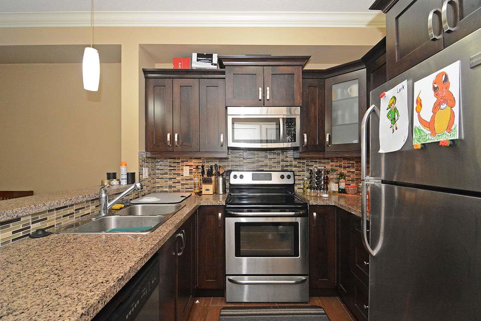 TOP FLOOR, Large, West-Facing 1-bedroom+Den, 1-bathroom unit with parking and storage. High quality kitchen and bathroom finishes, including sleek cabinets, stainless appliances, washer/dryer, granite countertops and marble bathroom. The kitchen and living room area is open concept with electric fireplace. Carpets in the bedrooms, laminated flooring in the living room, tiles in the kitchen and bathroom. The building has underground parkade, GYM, party room | VIDEO: https://youtu.be/Vl4TVPHc388 | SNEAK PEEK: Nov 23, 5:30-6:30pm | OPEN HOUSE: Nov 26, 12-2pm