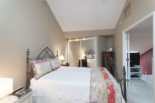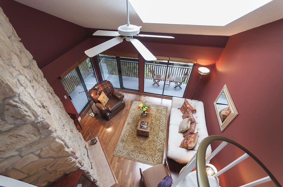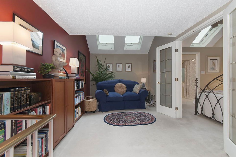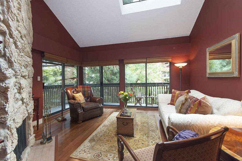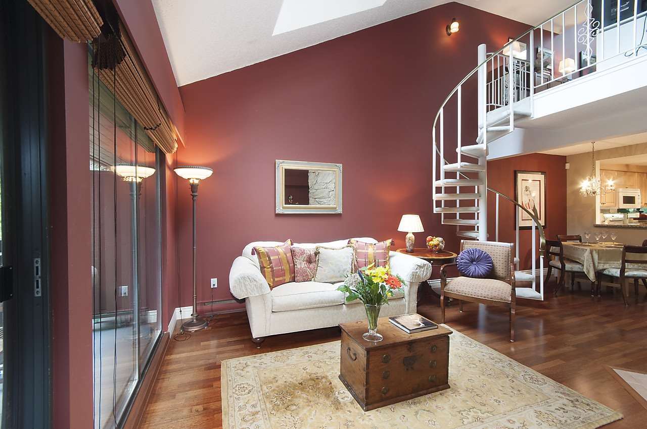 Fabulous & rare top floor, 2 level, 3 BEDROOM & family room/den & 2 full baths corner suite (1260 sqft). Main offers Brazilian Cherry hardwood flrs throughout, F–C stone wood burning fireplace, vaulted double height ceilings in LR, updated kitchen with new Miele Fridge & Dishwasher, 2 bedrooms & full bath, laundry/storage room with new Meile W&D & hotwater tank. Up is a good size cozy family room, Master bedroom and full ensuite, WI closet, bonus 200 sq.ft of storage space. Lots of windows & skylights offering natural light all year round & yet very private tucked in between the trees. Excellent building with a very proactive council & lots of recent updates. Super West End location, quiet tree lined street with easy access to shops on Robson St and Davie St., transit, great restaurants.