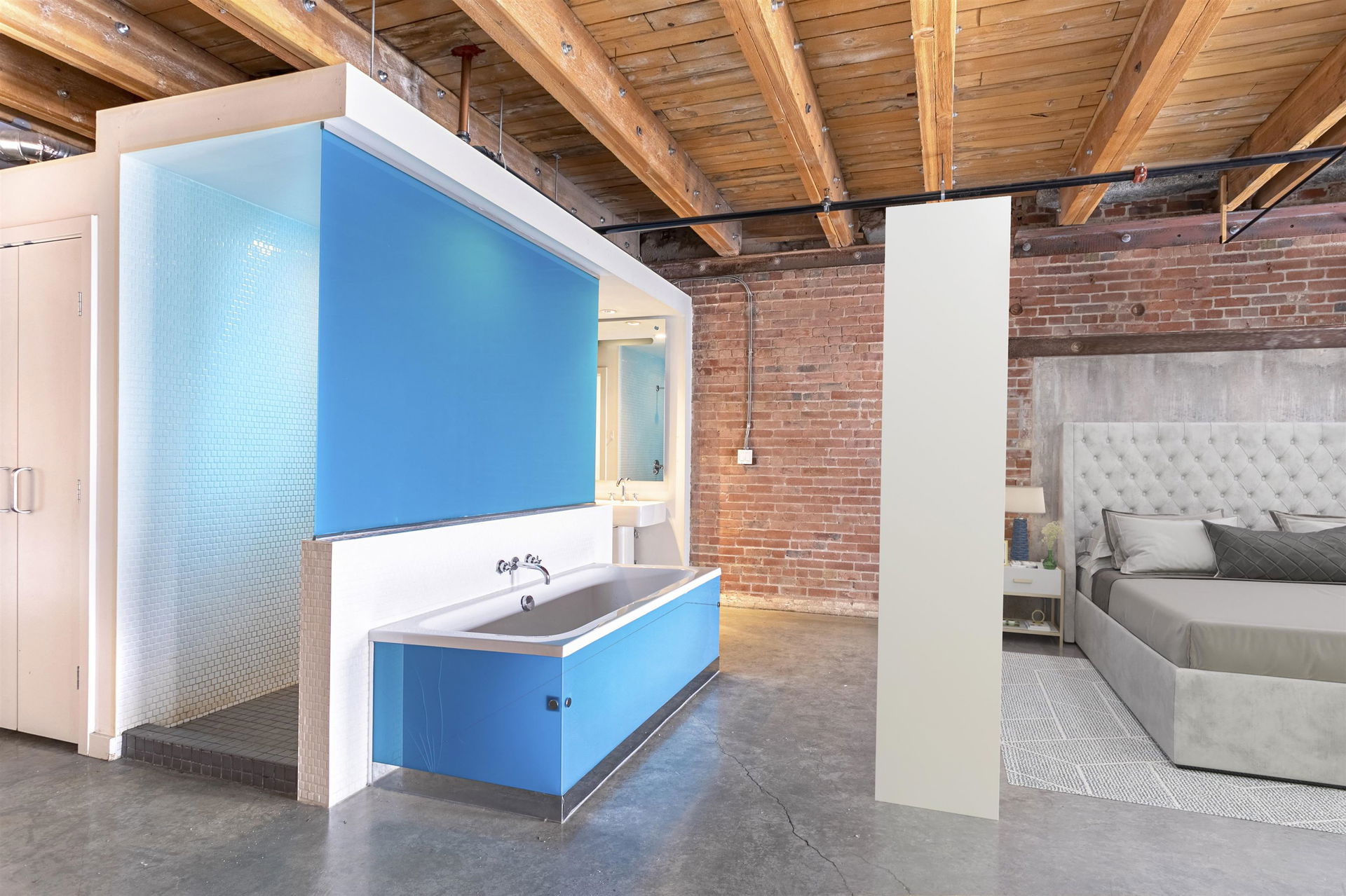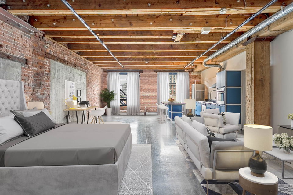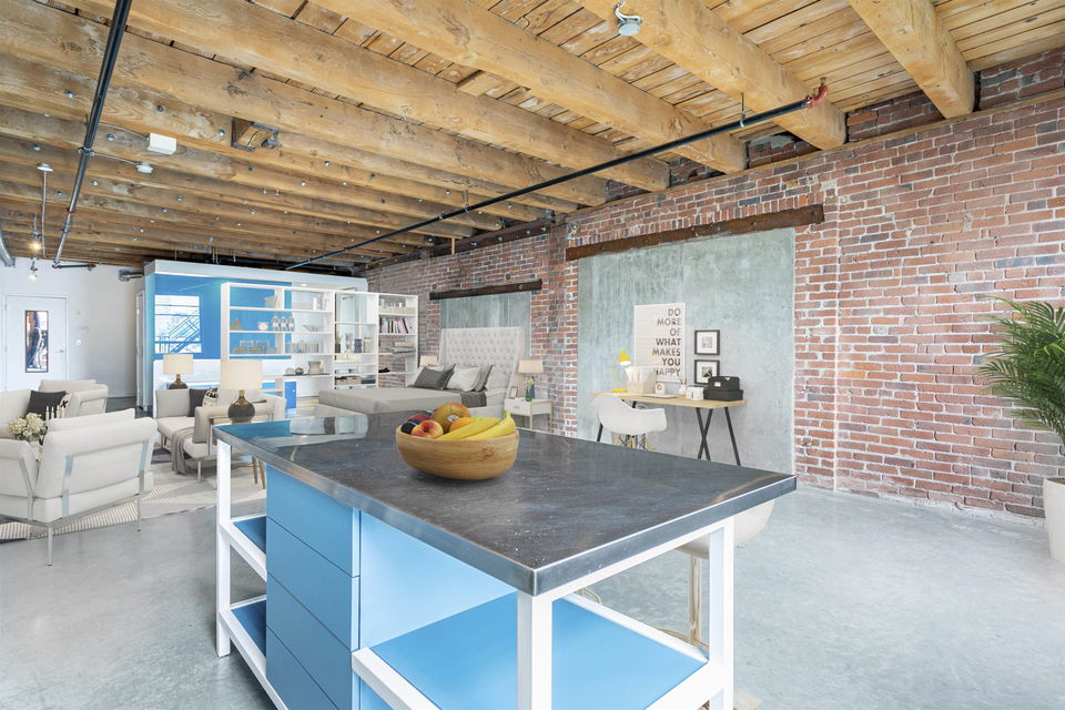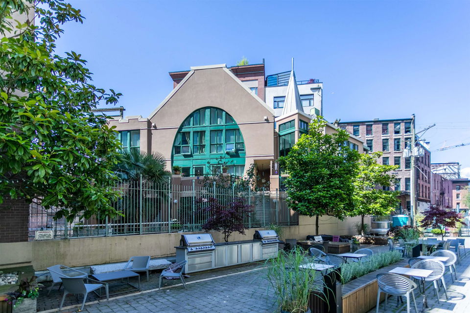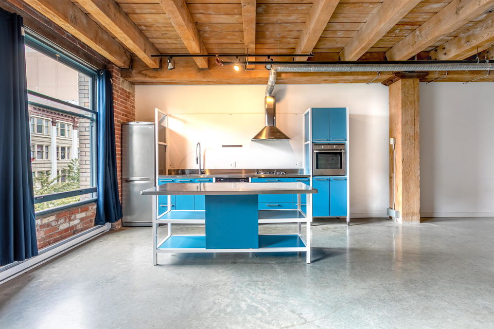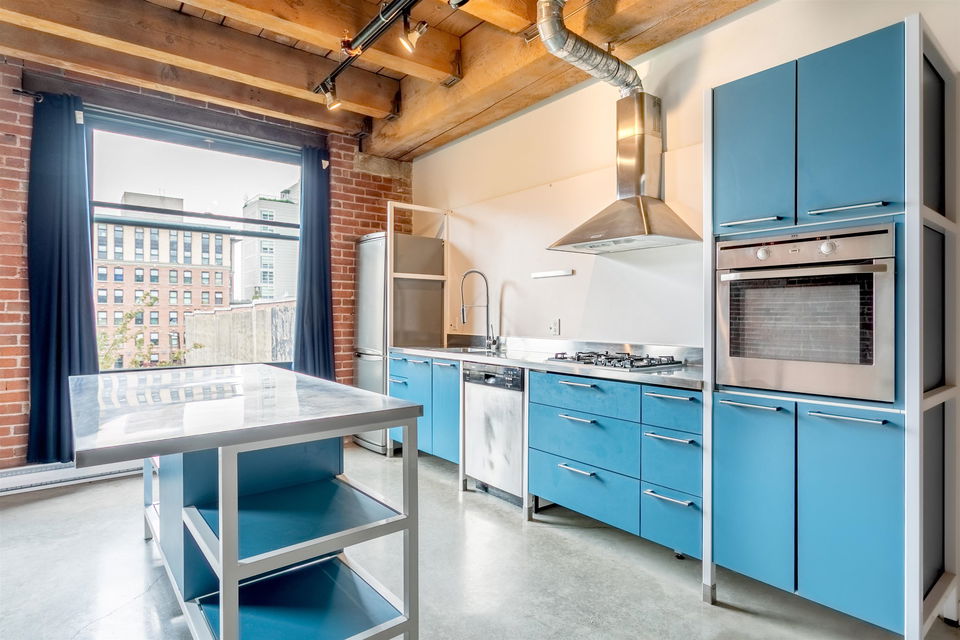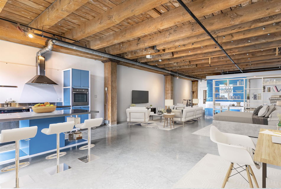 BEST PRICE PER SQ. FT. AT KORET LOFTS!! This amazing GASTOWN property offers everything you’ll LOVE about historical LOFT living. Built in 1906 the McLeenan & McFeely WAREHOUSE was converted by Alda Pereira Design in 2006. One of the LARGEST floor plans 1,151 sq. ft. combines POLISHED CONCRETE floors, sand blasted FIR BEAMS, original exposed brick, a modular European kitchen with restored SASH WINDOWS and 10′ ceilings. This south facing NEW YORK STYLE conversion is a canvas for you to create your own urban HERITAGE home, purchase as an INVESTMENT or reside in this LIVE / WORK space. SECURE underground parking comes with the property! Pets are welcome. Long term rentals and 7 day furnished rentals are permitted. The building provides a large GARDEN COURTYARD with a BBQ area, lounge and firepit for owners to enjoy. Combined with endless neighbourhood cafes, boutiques and award winning eateries in Gastown, Chinatown, Railtown and Crosstown! This is the perfect LOFT!