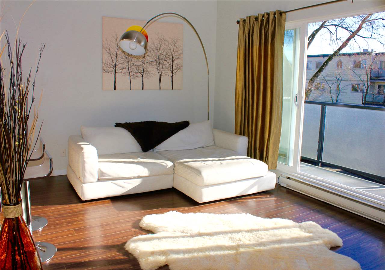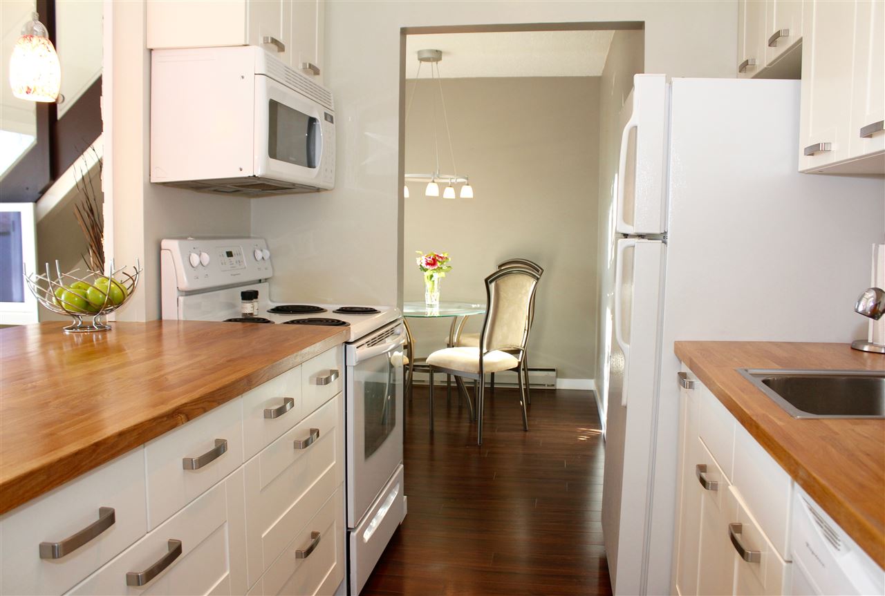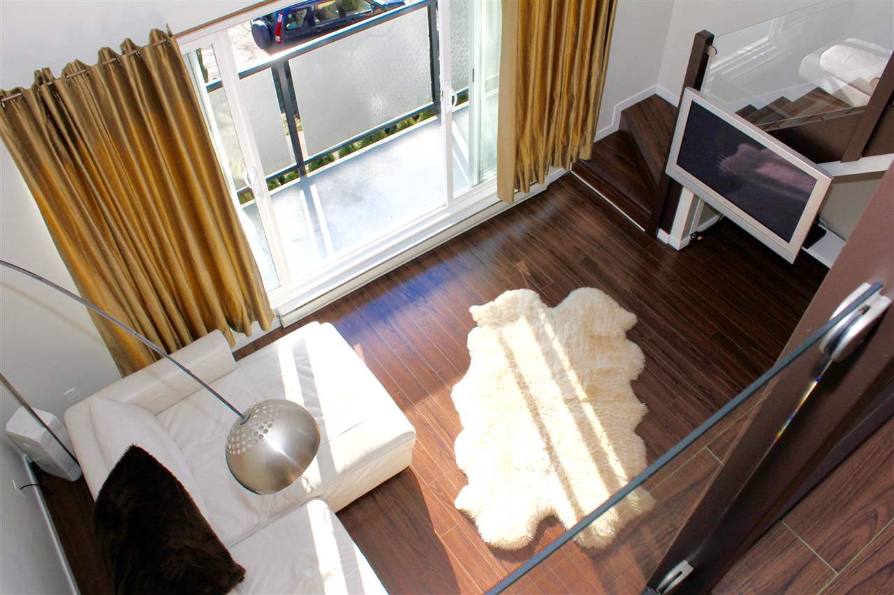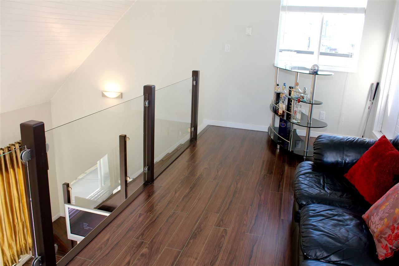 VIEW! DECK! LOFT! LOVE! This contemporary home has everything on your wish list. A top floor, south facing, extra large TWO bedroom & loft space that leads to your private roof deck with panoramic Burrard Inlet & North Shore Mountain views. 16′ vaulted ceilings, glass railings, ledgestone feature wall, an open kitchen with sleek butcher block counters & breakfast bar, updated bathroom & laminate floors throughout. Enjoy full size in-suite laundry. An entertainer’s dream with separate dining area, spacious living room & adjoining walk-out balcony. The “Emerson” is a very well maintained unique building with only 5 units. A newer roof, windows, balconies, and recently painted exterior. Welcome to Hastings East! Open House Sat. Feb 13th and Sun. Feb 14th 2-4pm