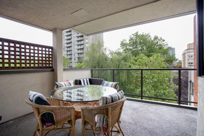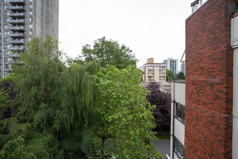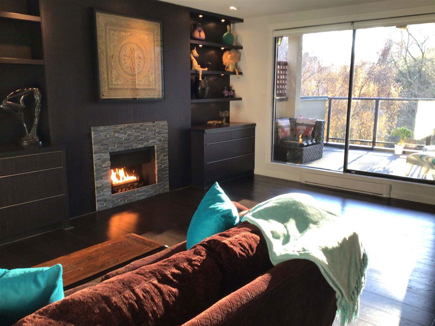 Edgemont Place! Gorgeous 1,100+ sf 2 bedroom (separated) & 2 full bathroom corner sub-penthouse in boutique concrete building overlooking tree-lined street. Will accommodate house-sized furniture. Completely renovated with designer details. Engineered wood floors throughout, new kitchen & bathroom with granite counters, steam shower & heated floors. Gas fireplace. Insuite laundry. Large south facing covered balcony. Rare find in this prime West End location! Steps to Stanley Park, English Bay, Denman Shops & Restaurants. Edgemont Place is a well managed 20 unit building. 1 secure underground parking stall & storage. 2 Pets OK. No rentals.