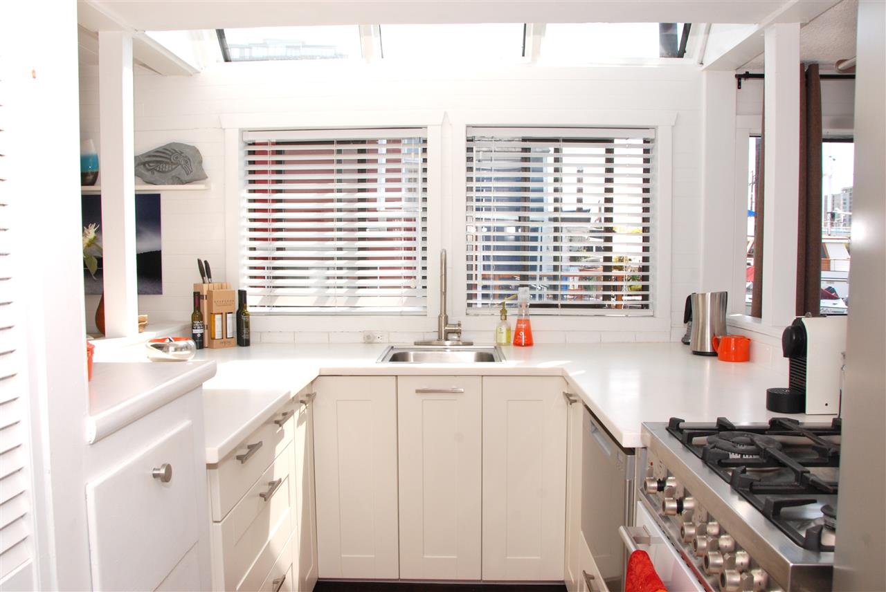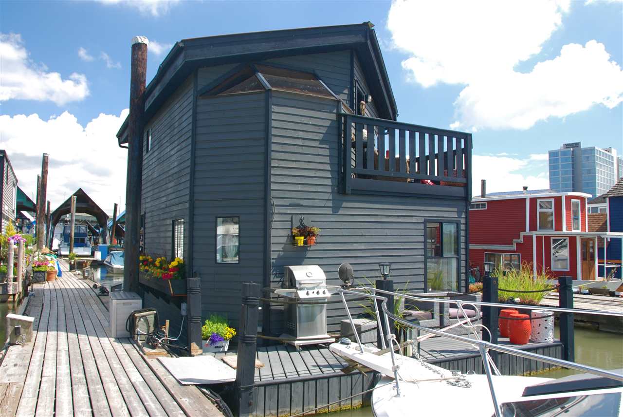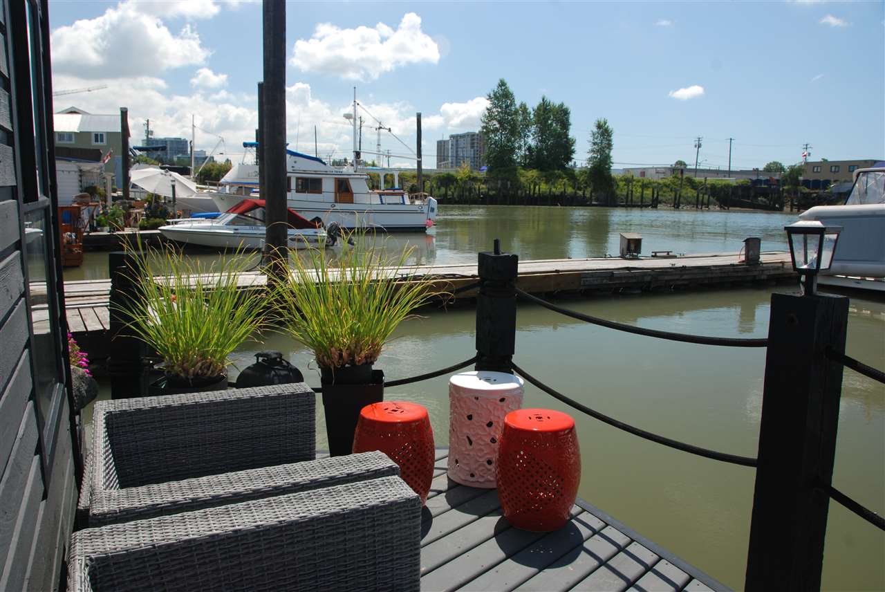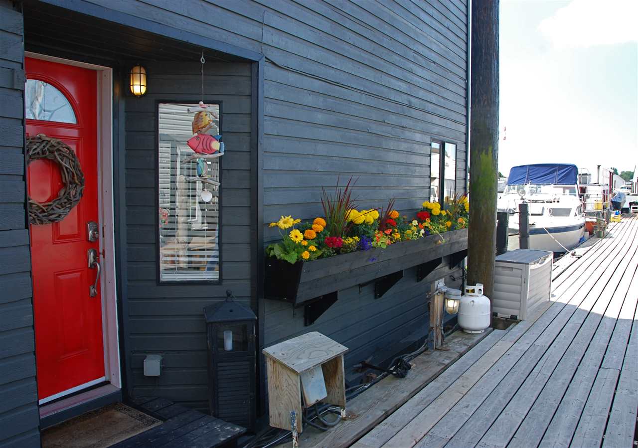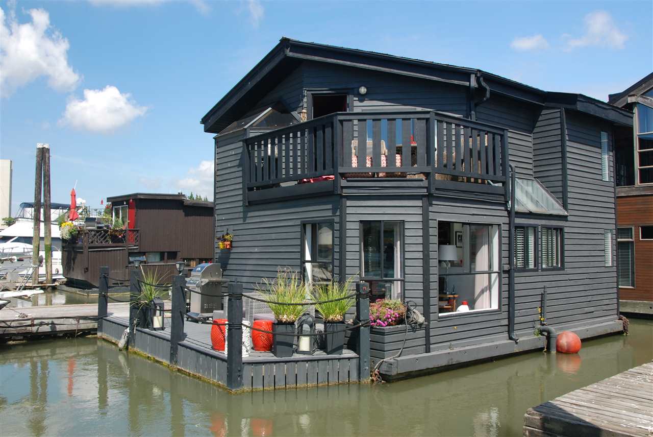 One of the most UNIQUE, AFFORDABLE homes on the market and a rare opportunity to live on the water! Come live on the water! Updated inside & out this one bedroom & den features gorgeous hickory flooring, open kitchen with Corian counters, stainless appliances, including a Bartizini gas range, Fisher Paykel dishwasher & LG counter depth fridge. Loads of light pours into this two level floating beauty! Skylights in the bedroom that opens onto an upper deck that’s perfect for morning coffee. In the evening, enjoy a glass of wine & BBQ on the lower outdoor deck overlooking the water. Bathroom boats new flooring, vanity and hardware. Lots of storage, including storage drawers in the staircase, an efficient electric fireplace, new decks, new window boxes, upgraded light fixtures, new window coverings, and a solid steel entry door. Just move in and enjoy this Richmond Marina community!
