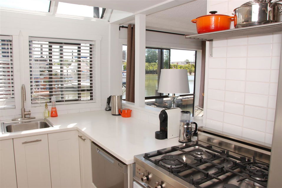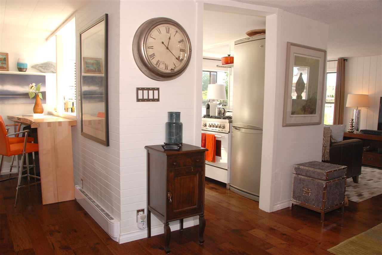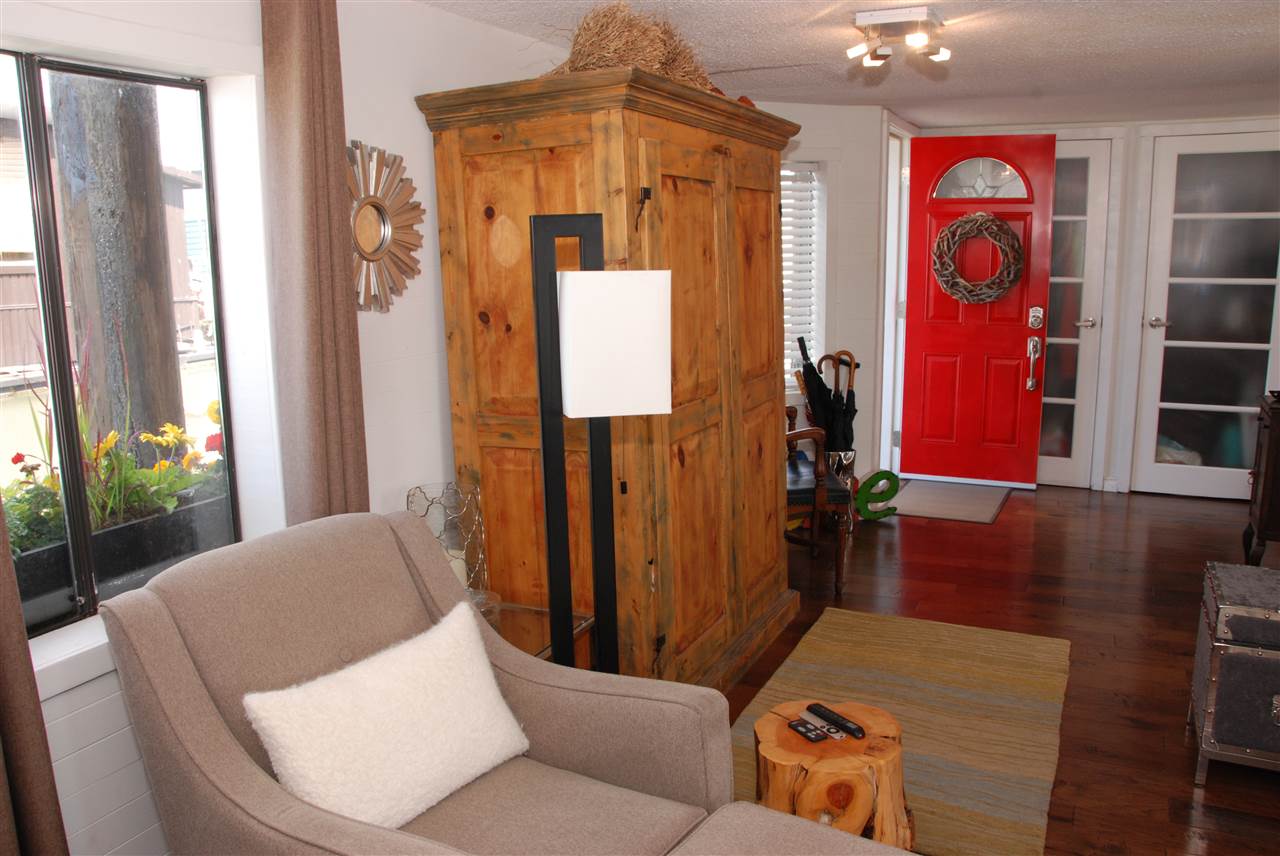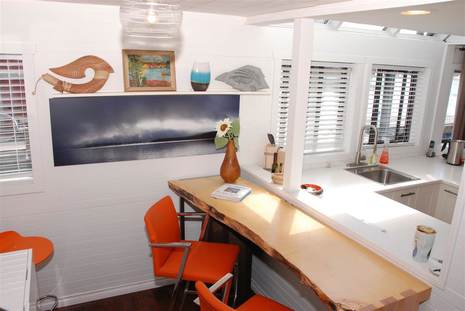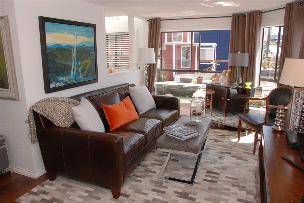 One of the most UNIQUE, AFFORDABLE homes on the market and a rare opportunity to live on the water! Come live on the water! Updated inside & out this one bedroom & den features gorgeous hickory flooring, open kitchen with Corian counters, stainless appliances, including a Bartizini gas range, Fisher Paykel dishwasher & LG counter depth fridge. Loads of light pours into this two level floating beauty! Skylights in the bedroom that opens onto an upper deck that’s perfect for morning coffee. In the evening, enjoy a glass of wine & BBQ on the lower outdoor deck overlooking the water. Bathroom boats new flooring, vanity and hardware. Lots of storage, including storage drawers in the staircase, an efficient electric fireplace, new decks, new window boxes, upgraded light fixtures, new window coverings, and a solid steel entry door. Just move in and enjoy this Richmond Marina community!