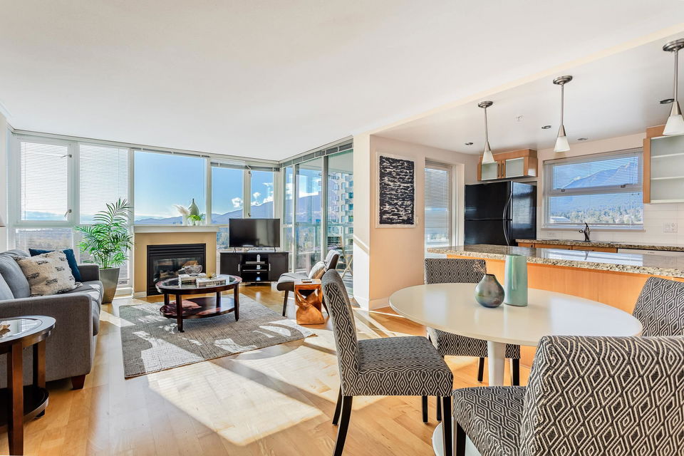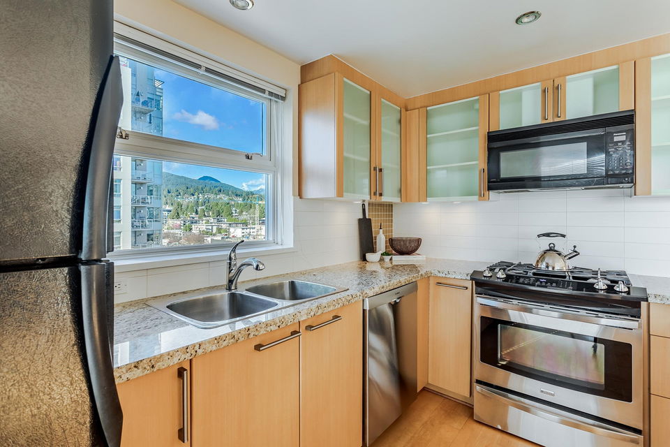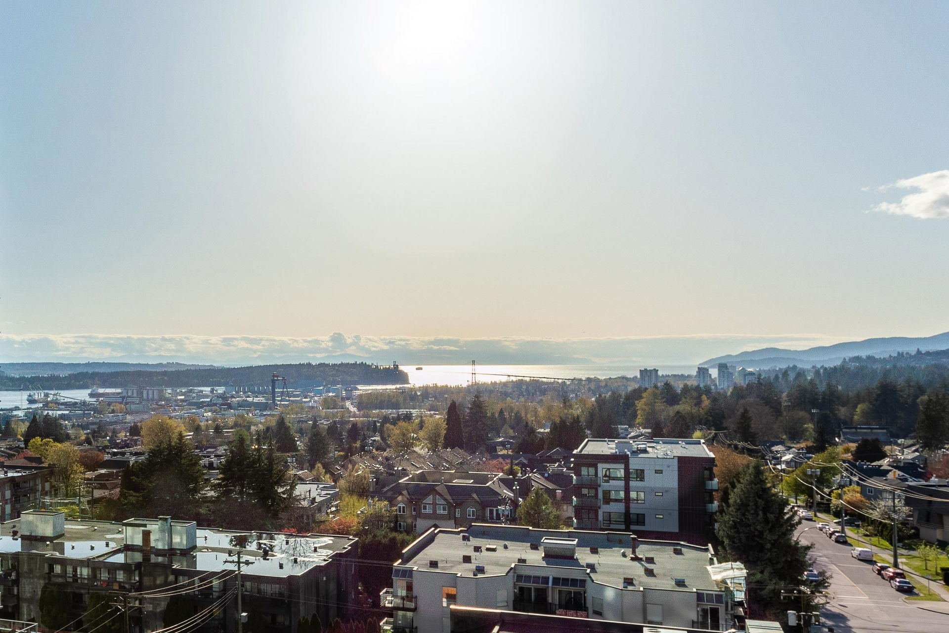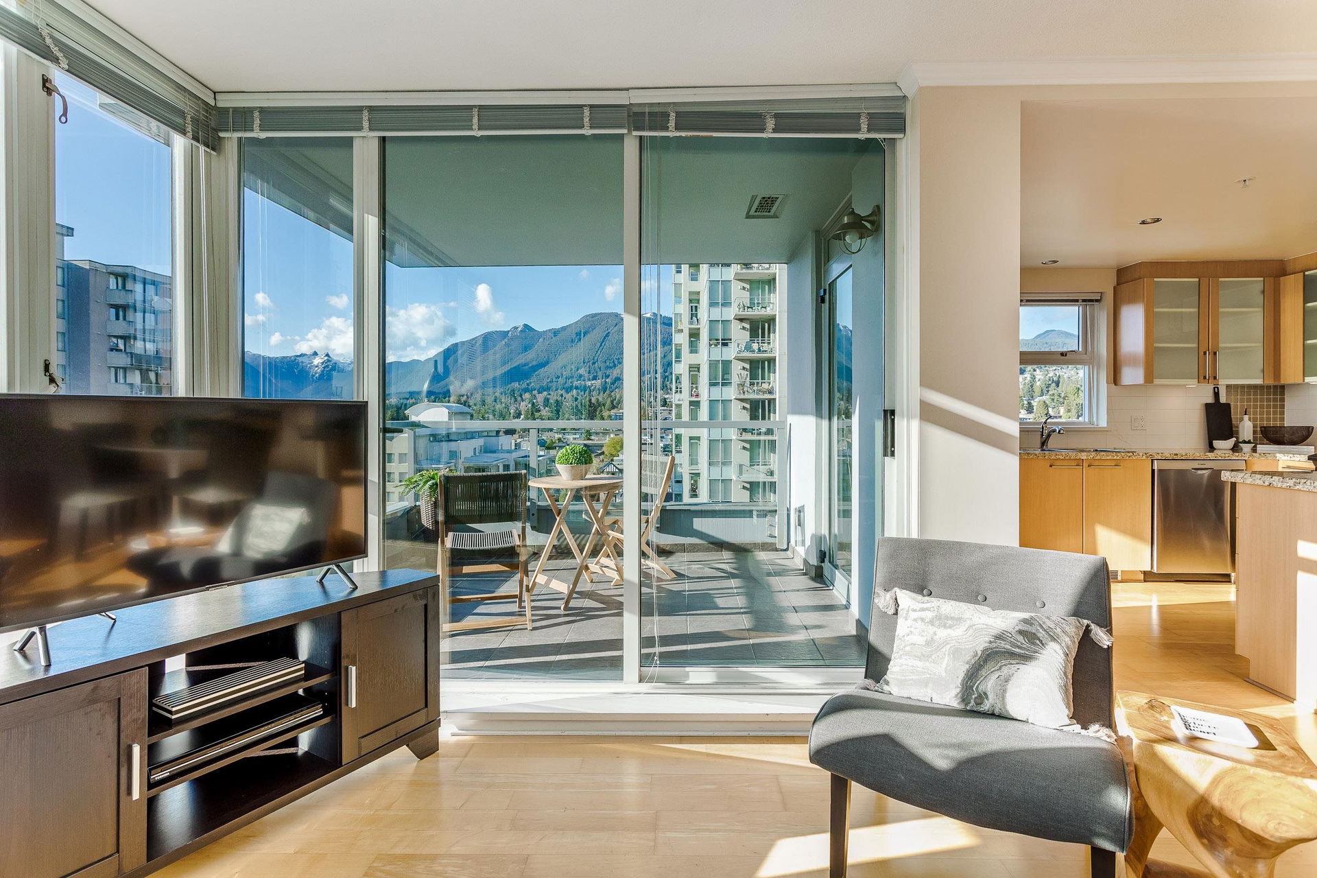 The SILVA! STYLISH and SOPHISTICATED living. Perched on the northwest corner of the 9th floor, this pristine 2-bedroom 2 bath home has it all! Staggering panorama outlook from every room with floor to ceiling windows capturing open views of the mountains, water, Stanley Park, the Lions Gate Bridge and Jaw Dropping Sunsets. An open plan kitchen, dining and living area and gas fireplace. Coffee or cocktails on the balcony. Everything about this suite is generous. A welcoming spacious entry, primary bedroom with a walk-in closet and ensuite. A second bedroom and 4-piece bath. Loads of closet space and more storage in the laundry area. All of this includes parking and a locker. In the heart of Central Lonsdale, this LEED certified building is cost effective and incredibly well managed and maintained. Owners enjoy a full gym, amenity room with an outdoor patio for entertaining and a guest suite. This bustling area of the North Shore has restaurants, shops, cafes, parks and so much more to offer!